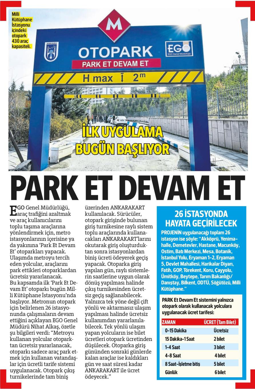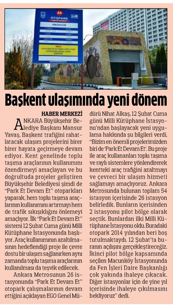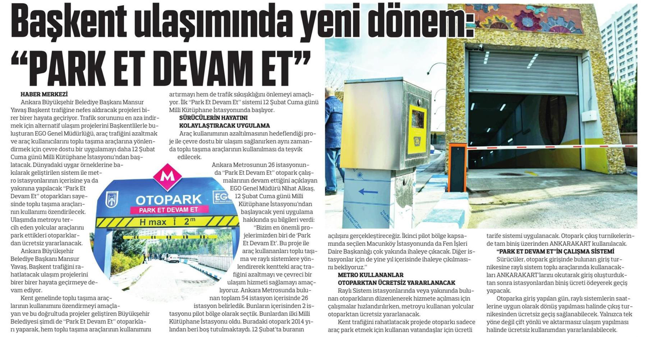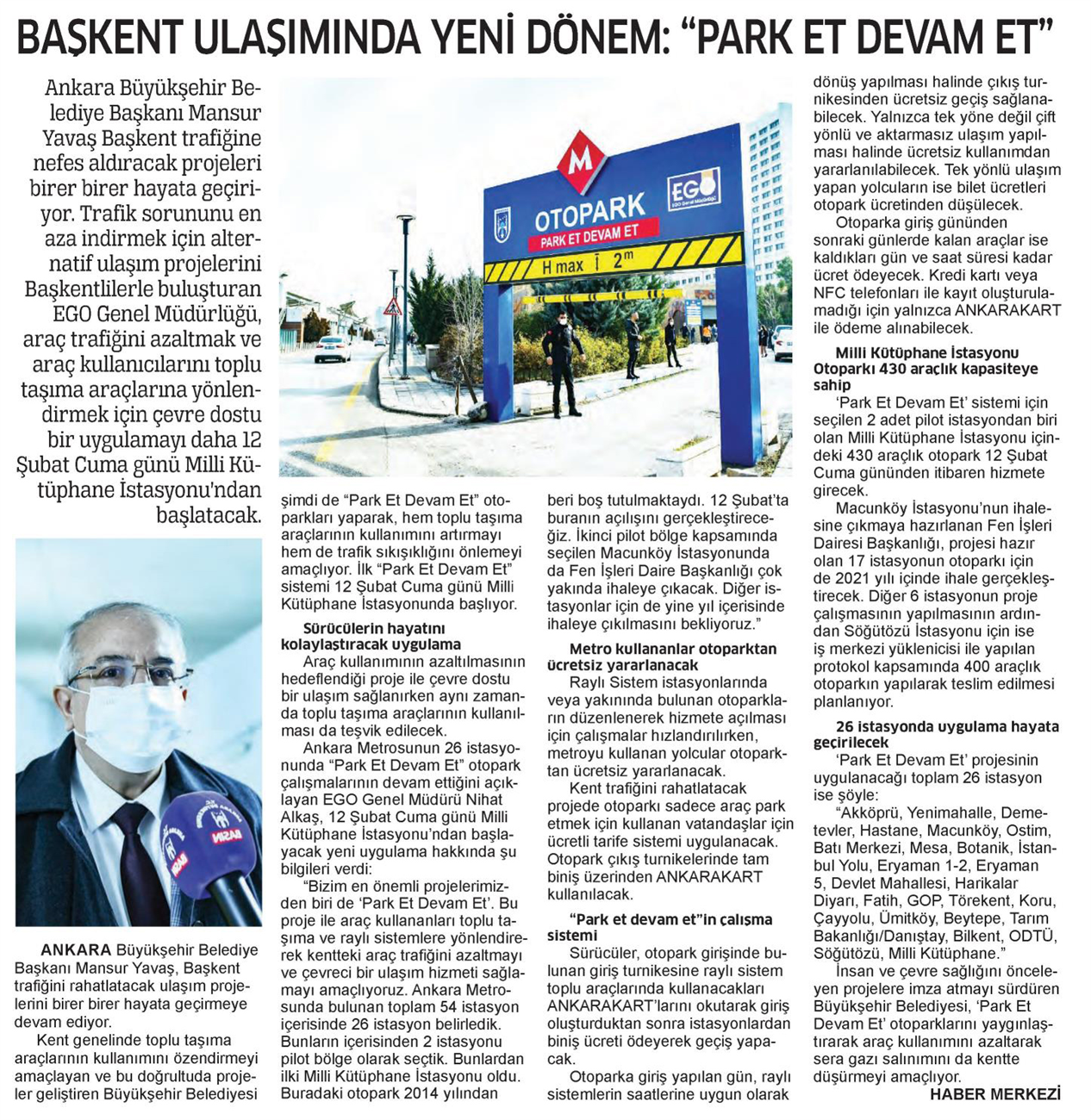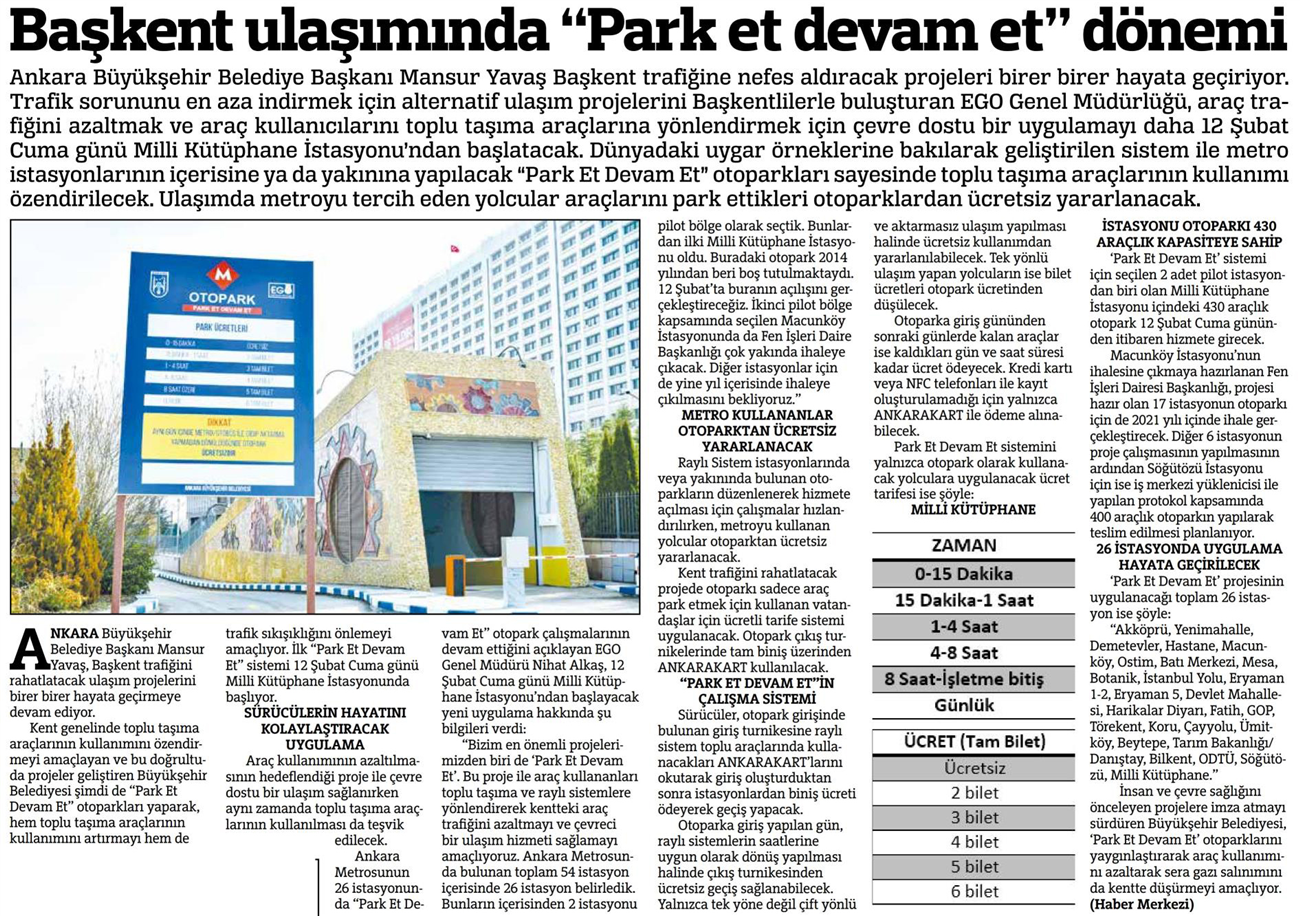 Başkent Gazetesi / 12.02.2021 Başkent ulaşımında yeni dönem: “Park Et Devam Et”