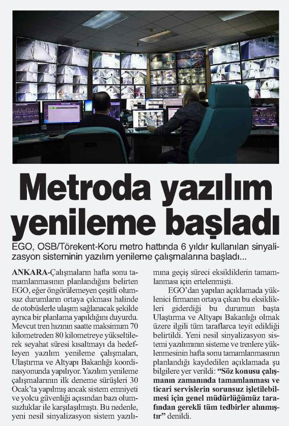 Kentiçi Toplu Taşıma / 15.02.2021 Metroda yazılım yenileme başladı
