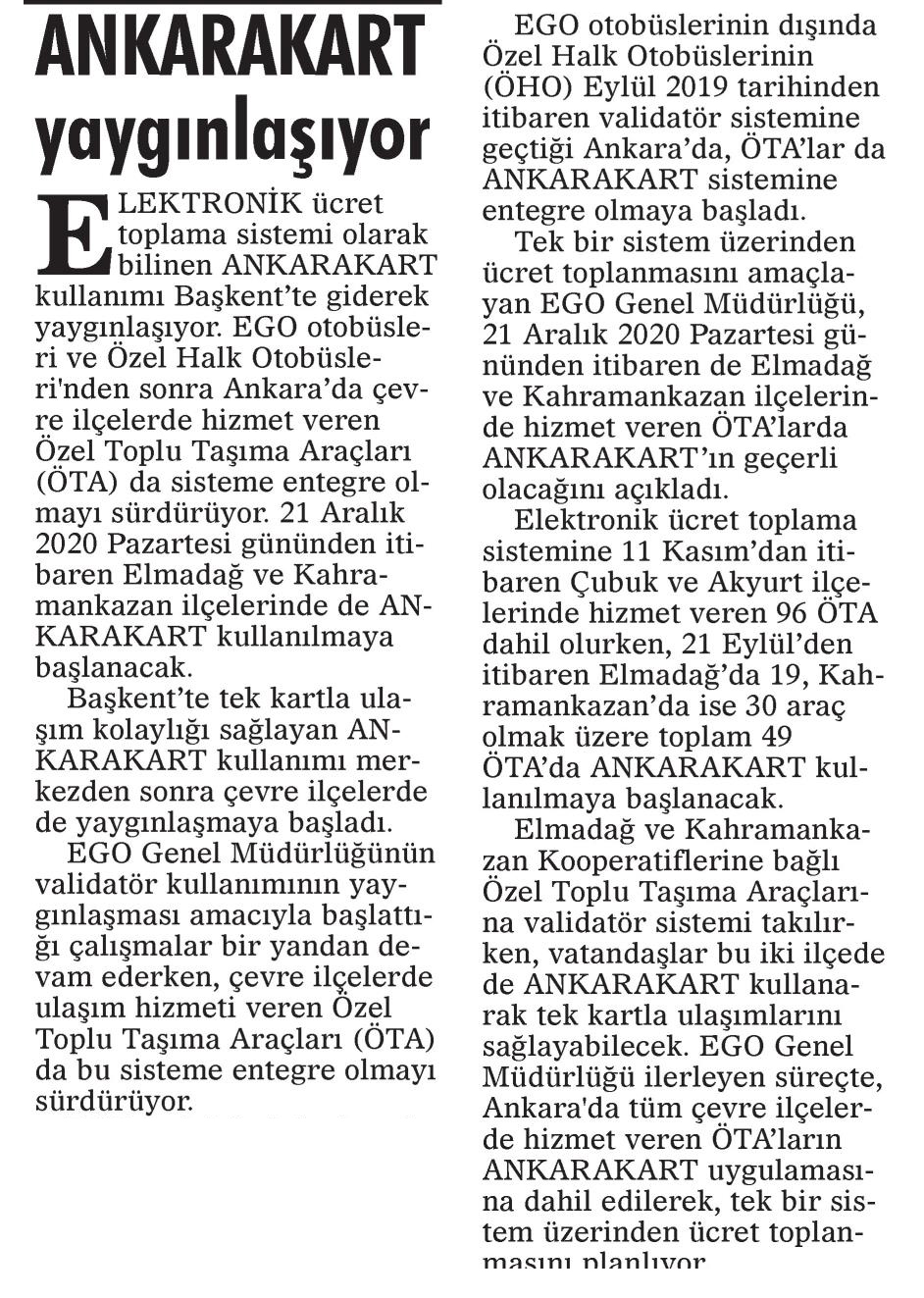 Başkent Postası / 01.02.2021 Ankarakart yaygınlaşıyor
