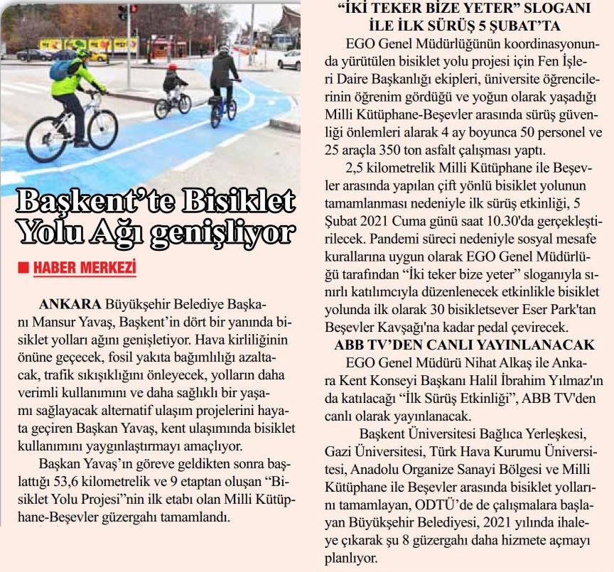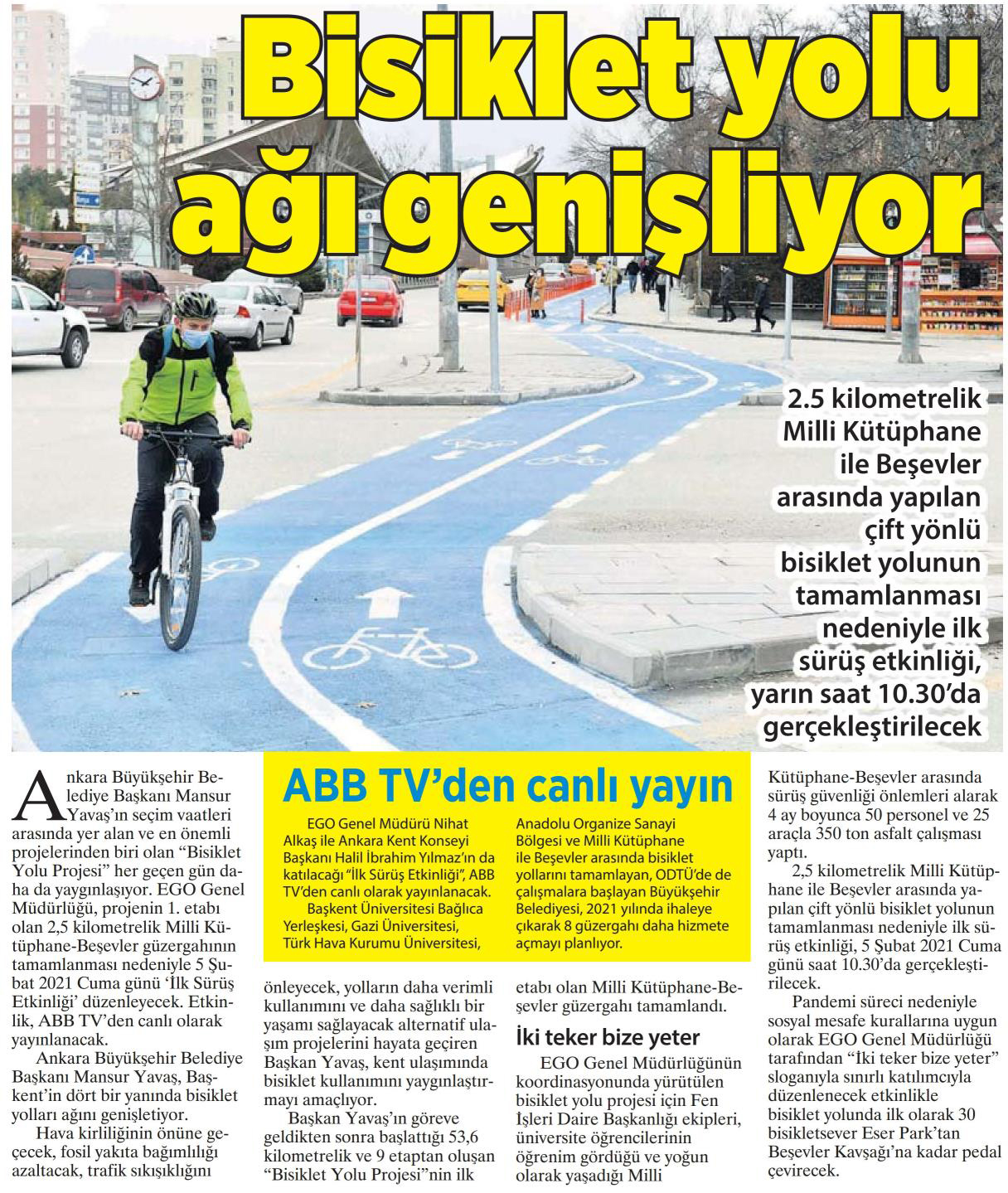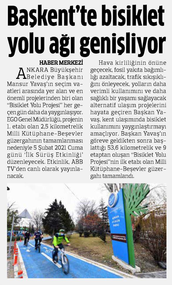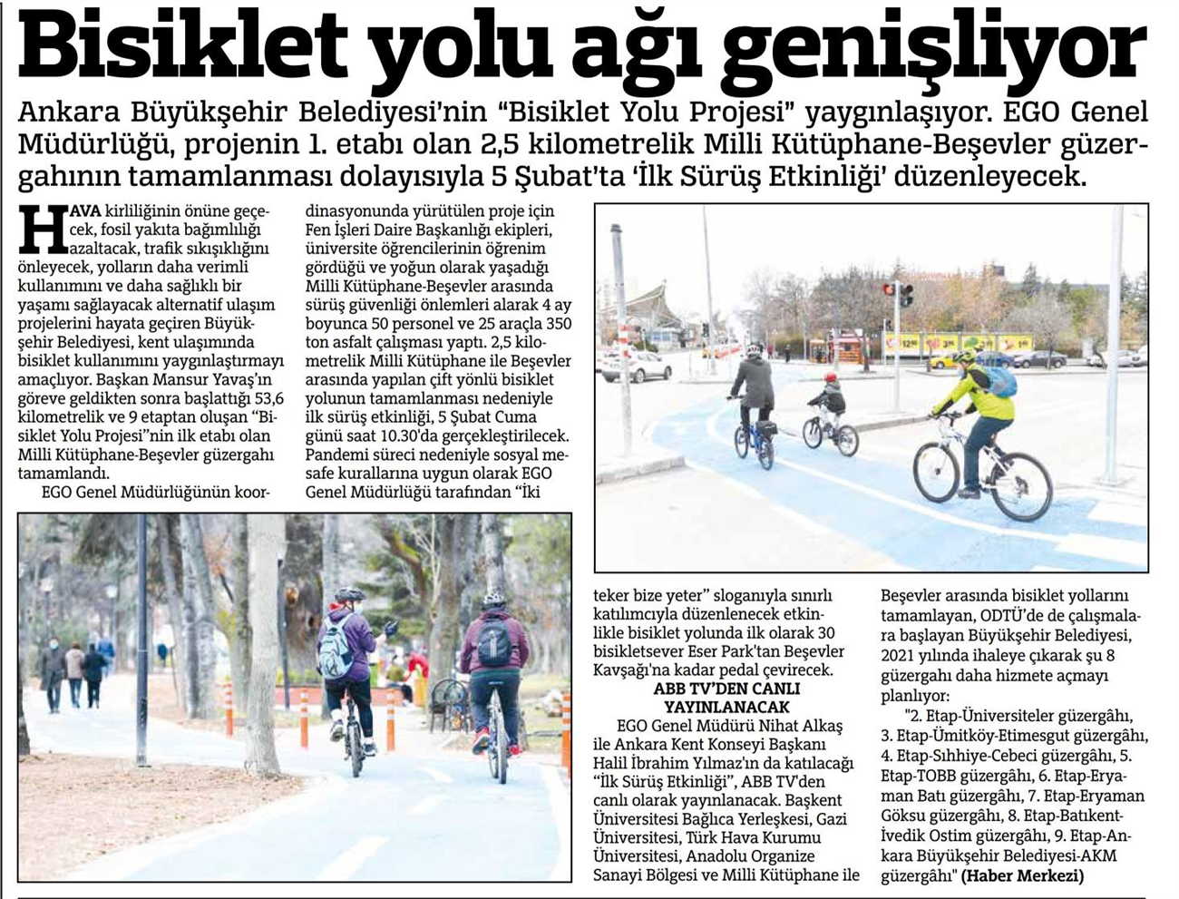 Milliyet Ankara / 04.02.2021 Bisiklet yolu ağı genişliyor