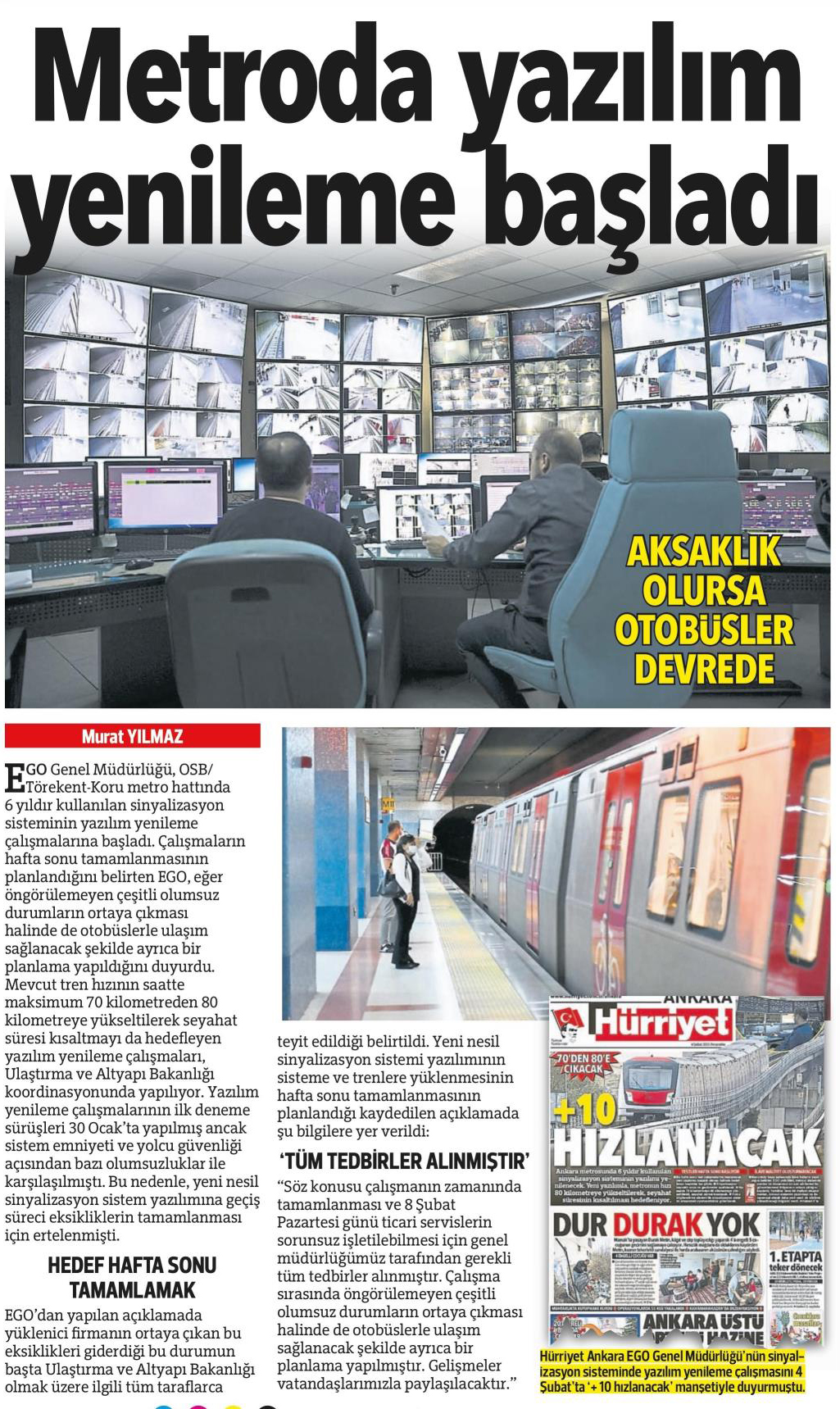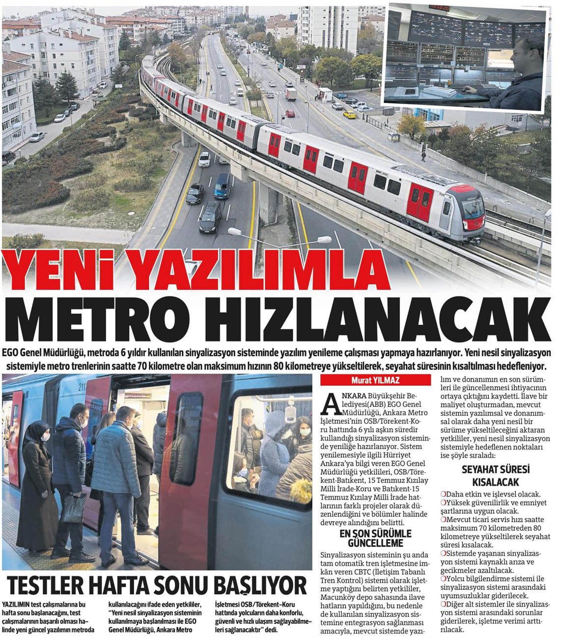 Hürriyet Ankara / 04.02.2021 Yeni yazılımla Metro hızlanacak