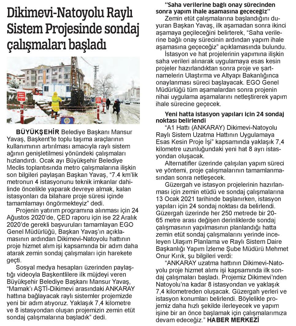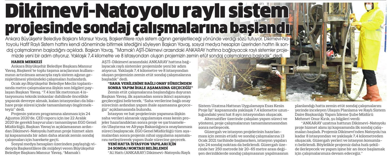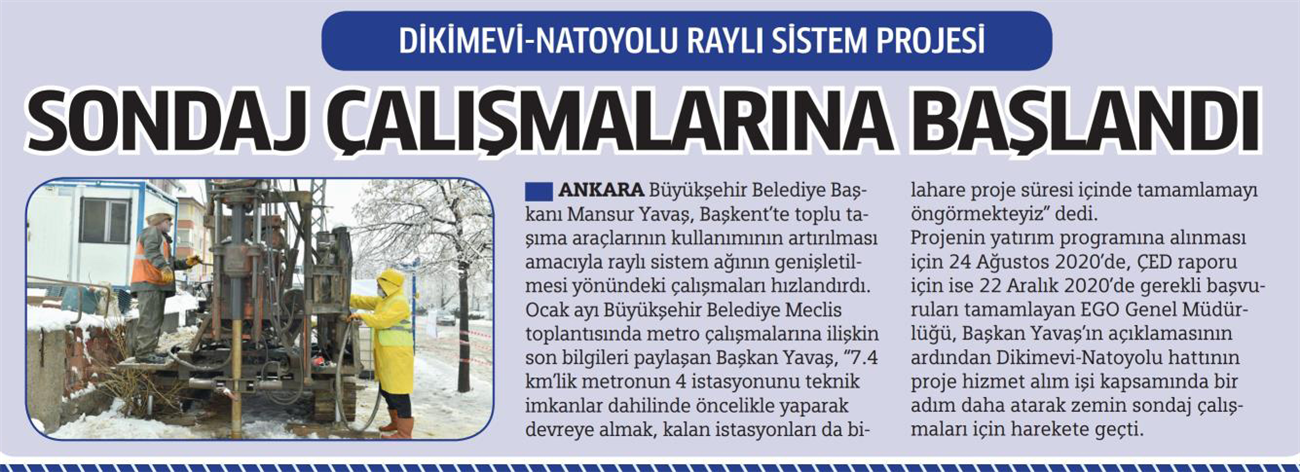 Ticari Hayat / 20.01.2021 Dikimevi-Natoyolu sondaj çalışmaları başladı