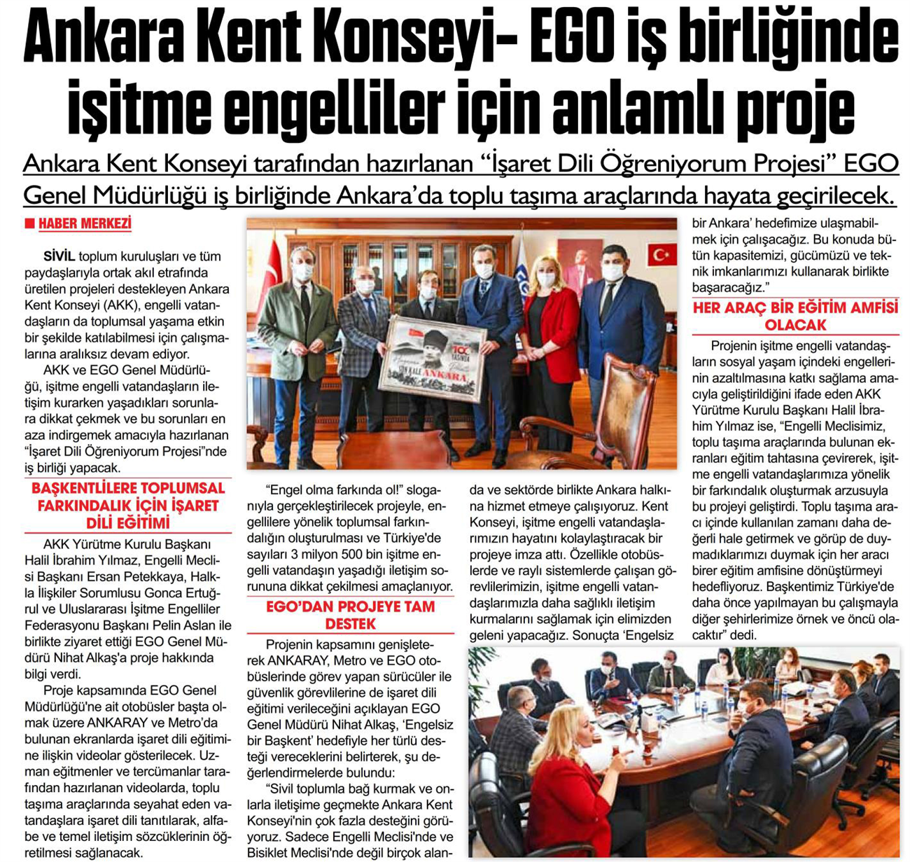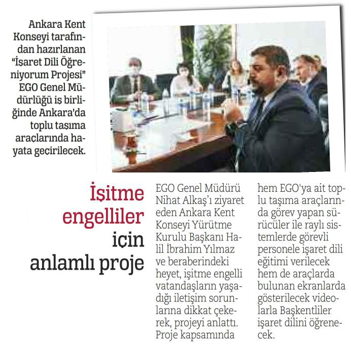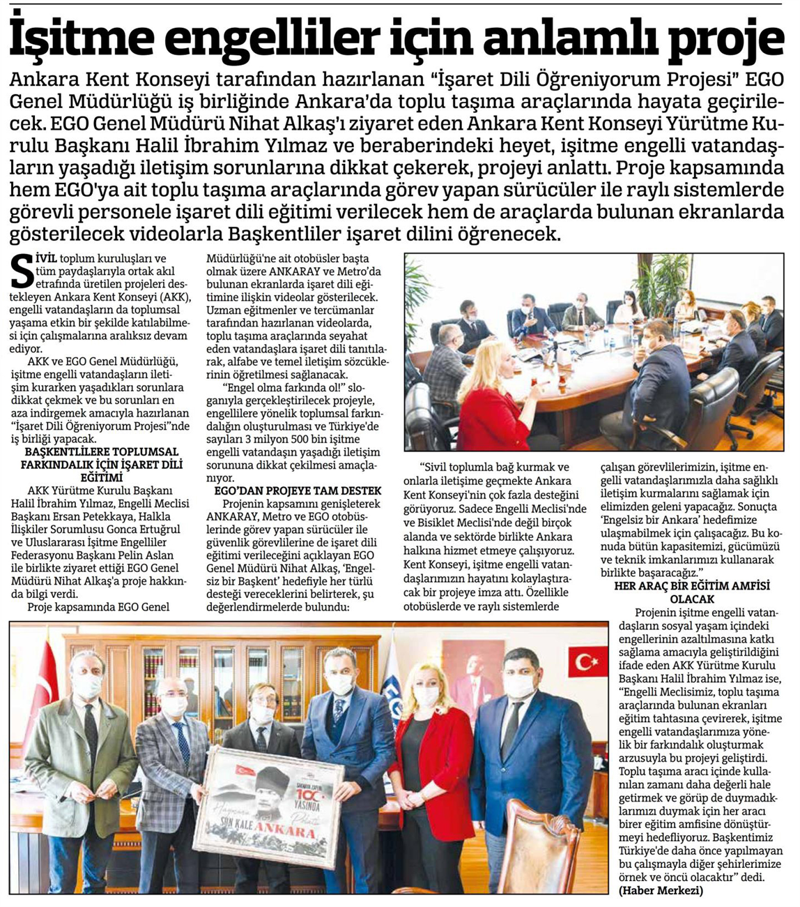 Başkent Gazetesi / 22.01.2021 İşitme engelliler için anlamlı proje