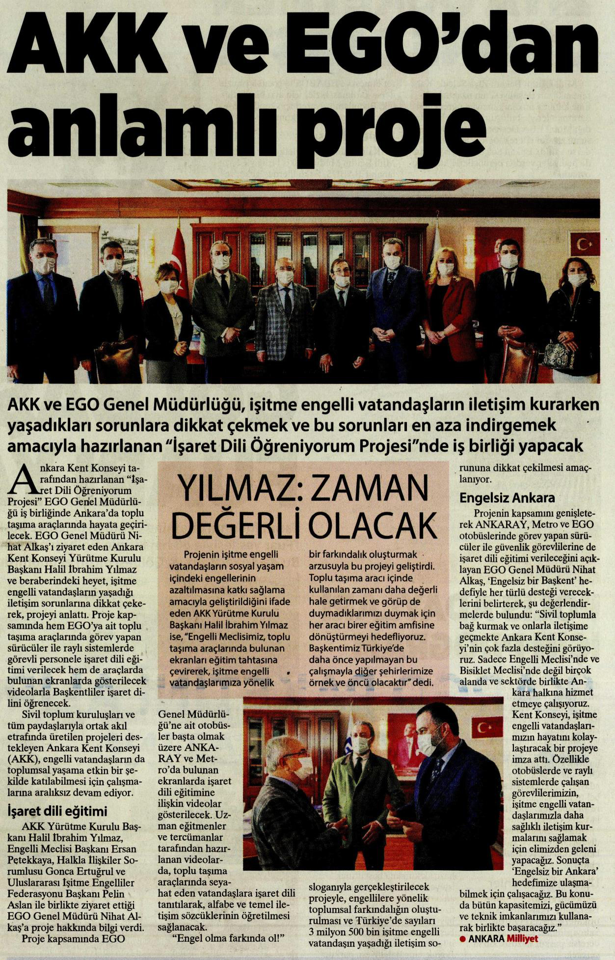 Milliyet Ankara / 22.01.2021 AKK ve EGO’dan anlamlı proje