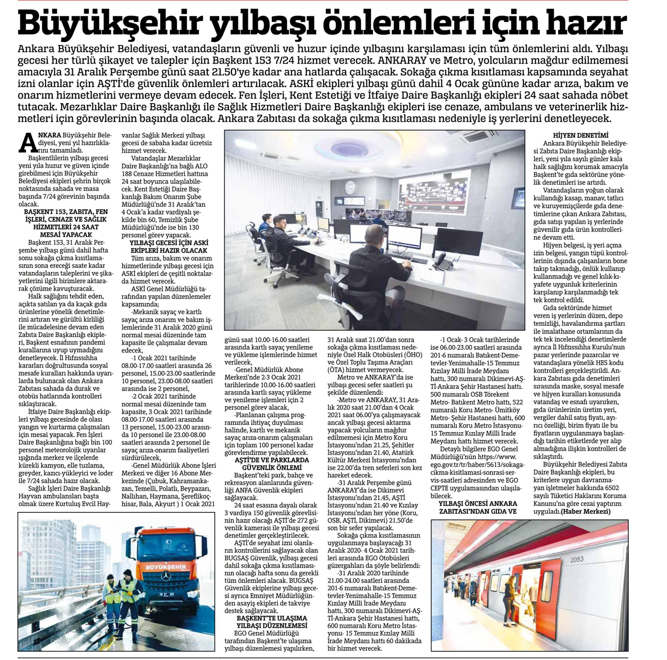 Milli Gazete / 01.01.2021 Ankarakart uyarısı