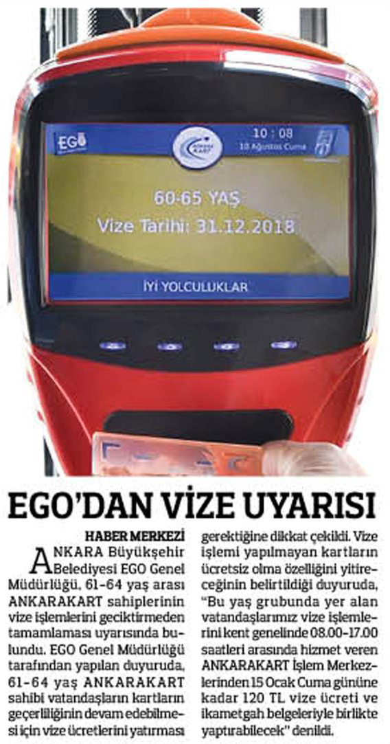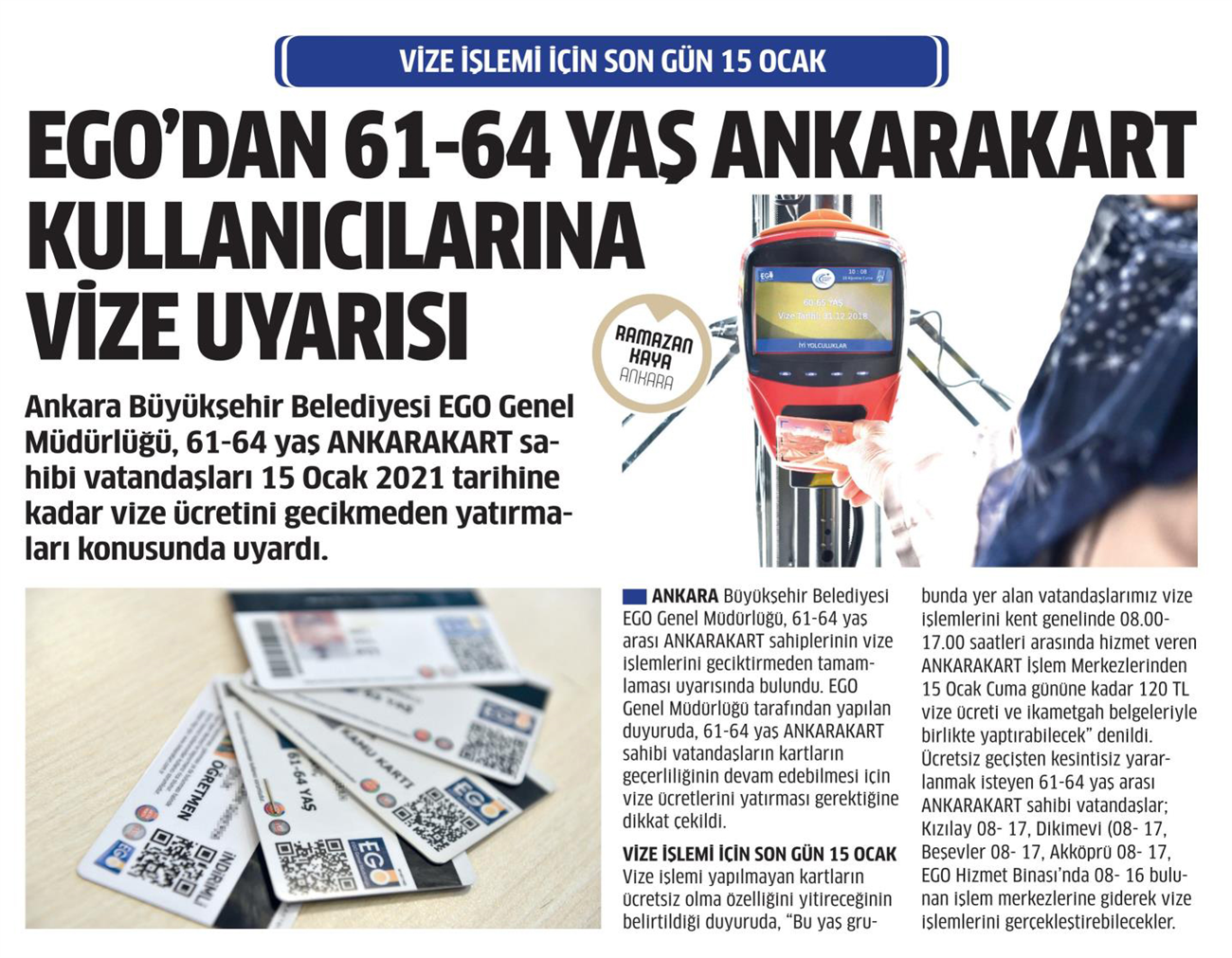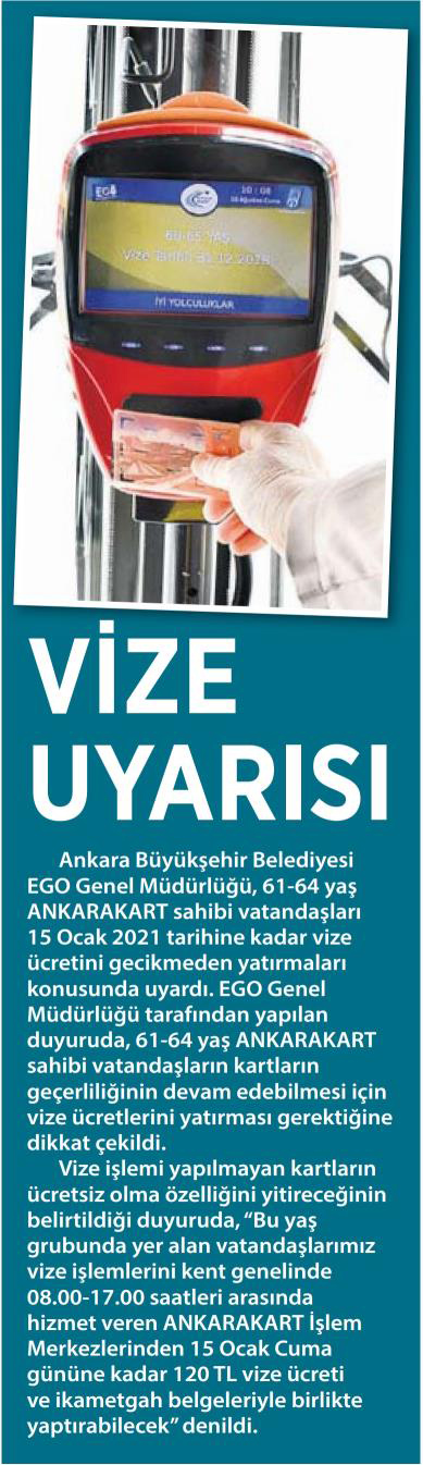 Milli Gazete Ankara / 08.01.2021 61-64 yaş Ankarakart kullanıcılarına vize uyarısı