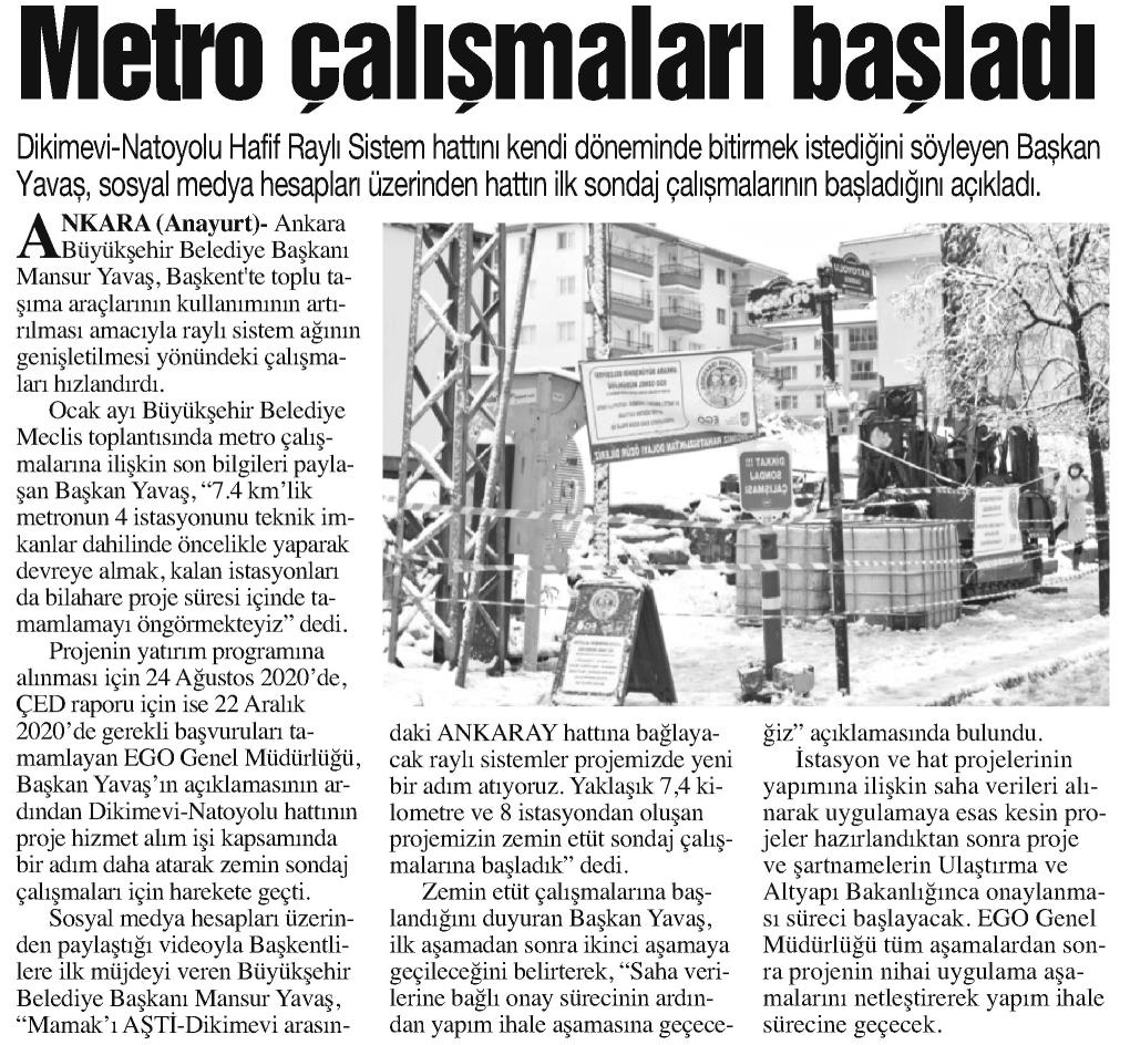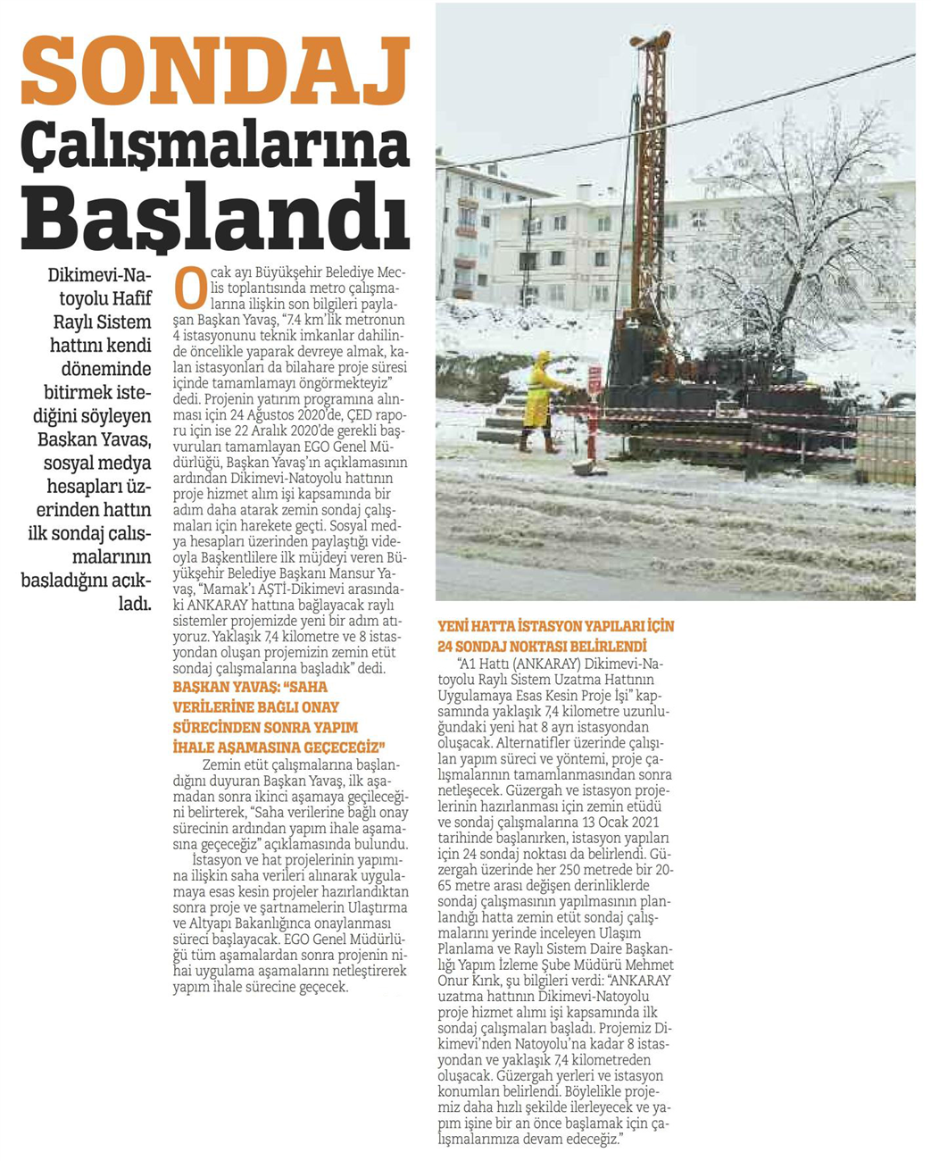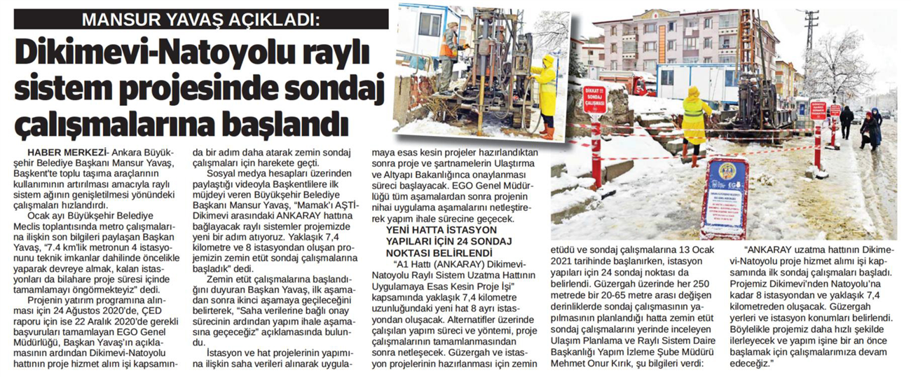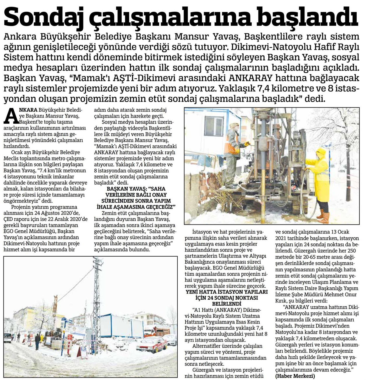 Başkent Gazetesi / 20.01.2021 Dikimevi-Natoyolu sondaj çalışması başladı