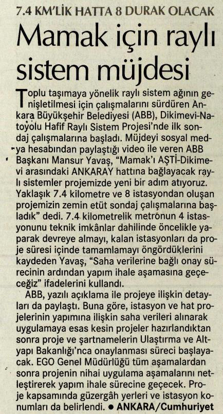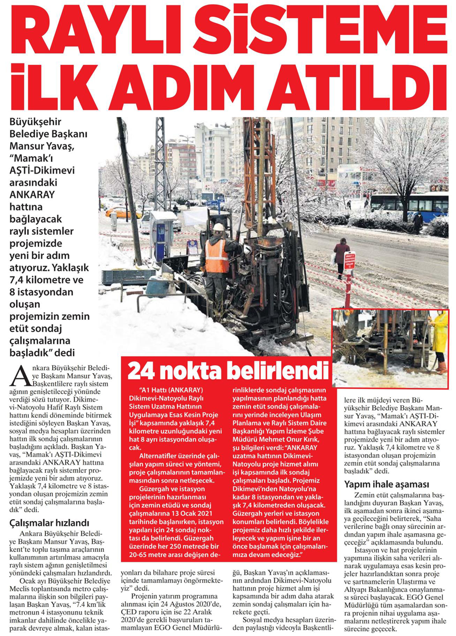 Milliyet Ankara / 20.01.2021 Raylı sisteme ilk adım atıldı