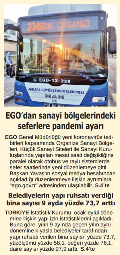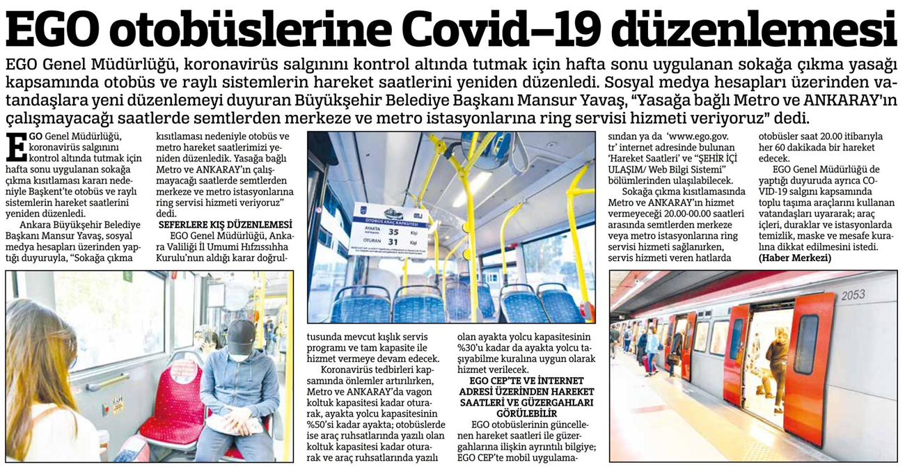 Başkent Gazetesi / 25.11.2020 EGO otobüslerine Covid-19 düzenlemesi