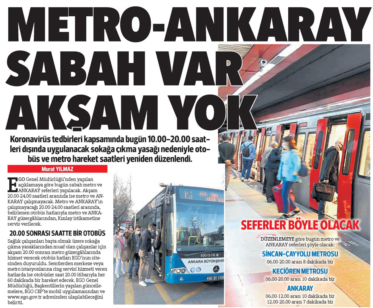 Hürriyet Ankara / 22.11.2020 Metro-Ankaray sabah var akşam yok