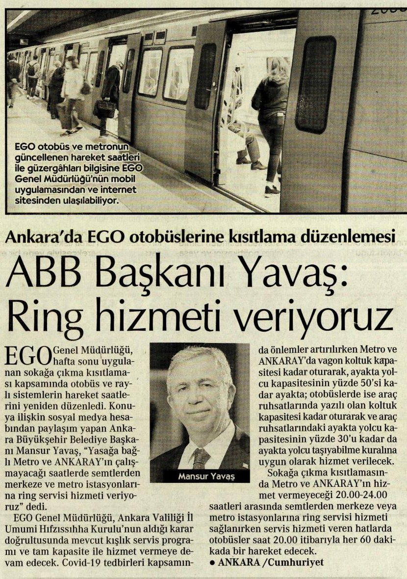Milliyet Ankara / 25.11.2020 Seferler güncellendi
