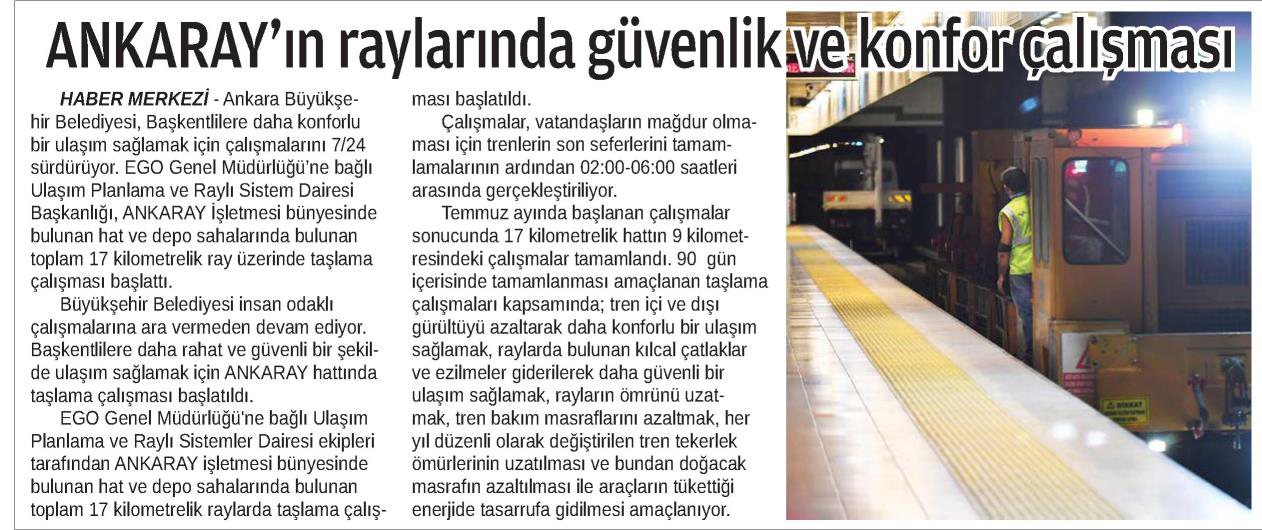 24 Saat / 19.09.2020 Ankaray’ın raylarında güvenlik ve konfor çalışması