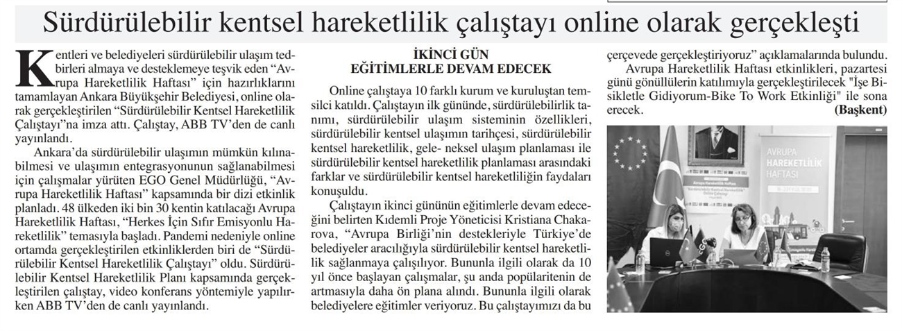 Başkent Gazetesi / 21.09.2020 Sürdürülebilir Kentsel Hareketlilik Çalıştayı