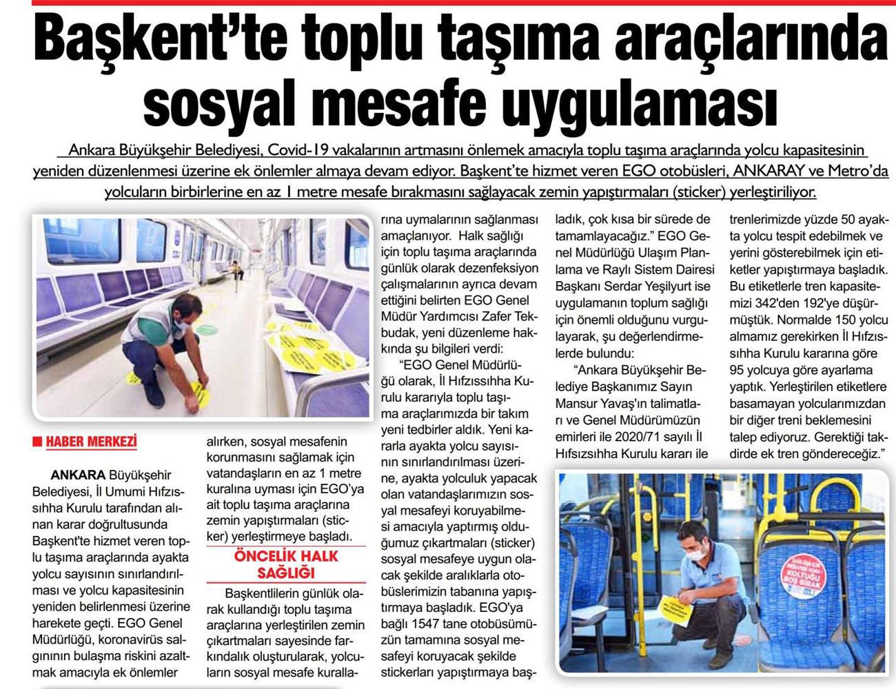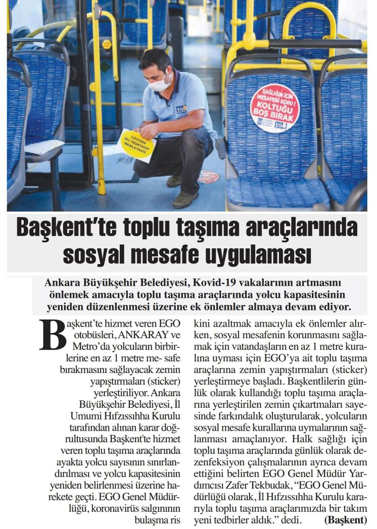 Başkent Gazetesi / 22.09.2020 Başkent’te toplu taşıma araçlarında sosyal mesafe uygulaması