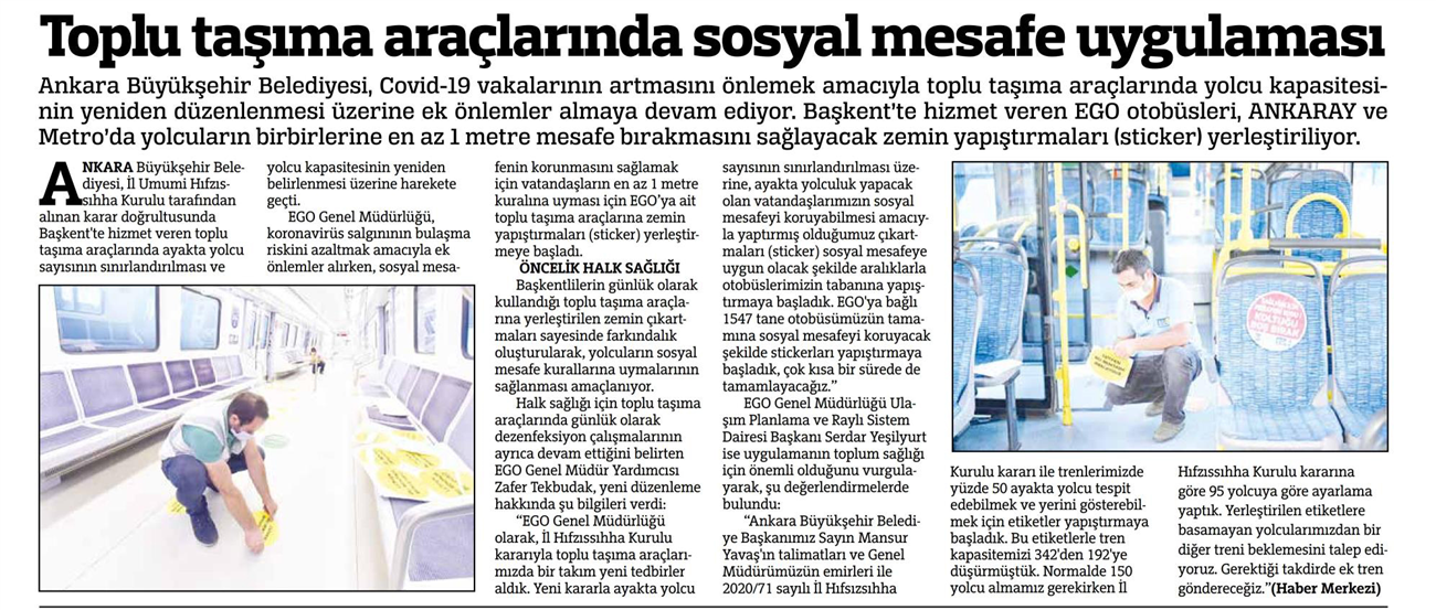 Milliyet Ankara / 22.09.2020 Mesafeli ulaşım