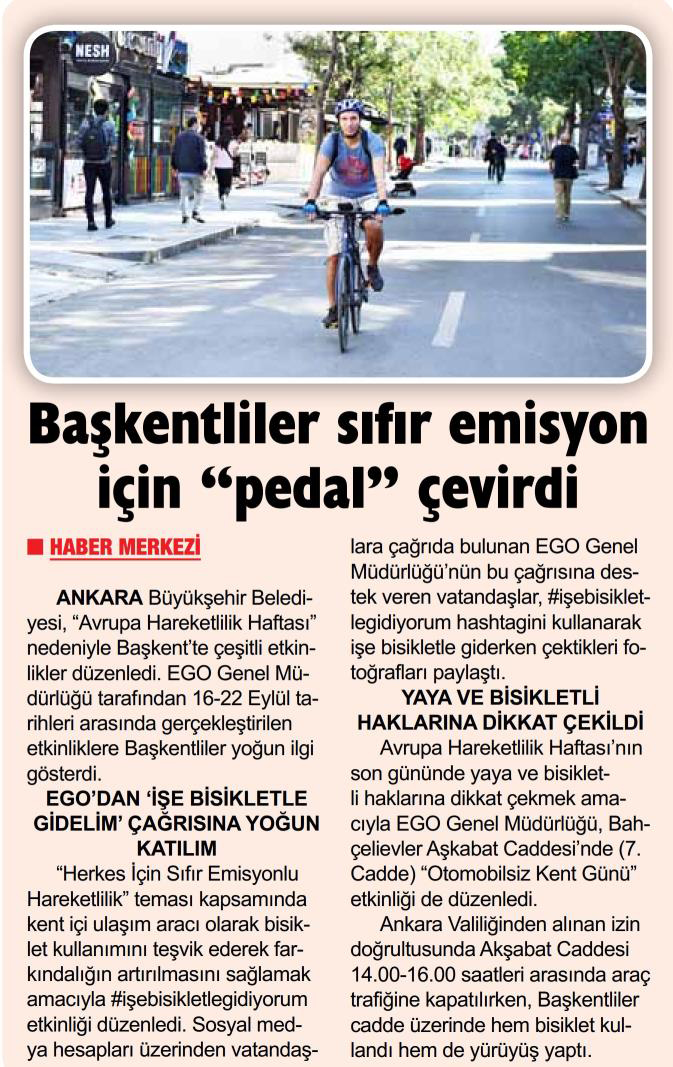 Milliyet Ankara / 24.09.2020 İşe pedal çevirdiler