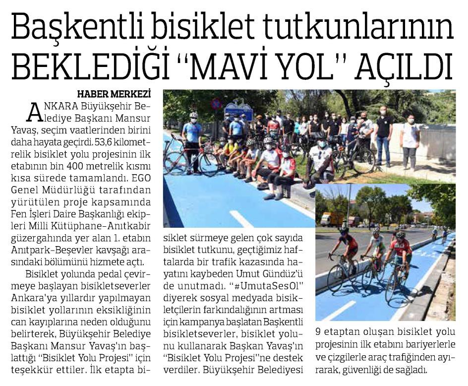 Milliyet / 17.08.2020 Mavi yol açıldı