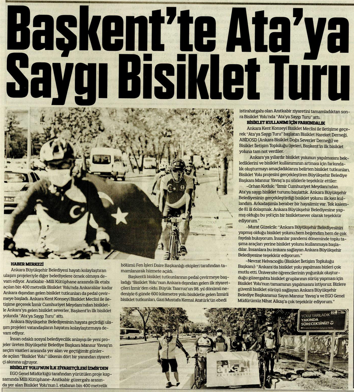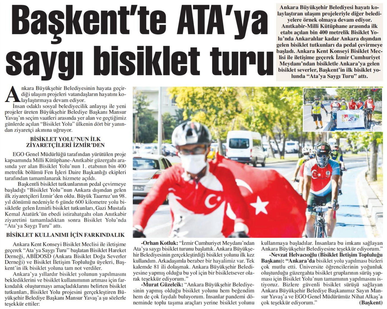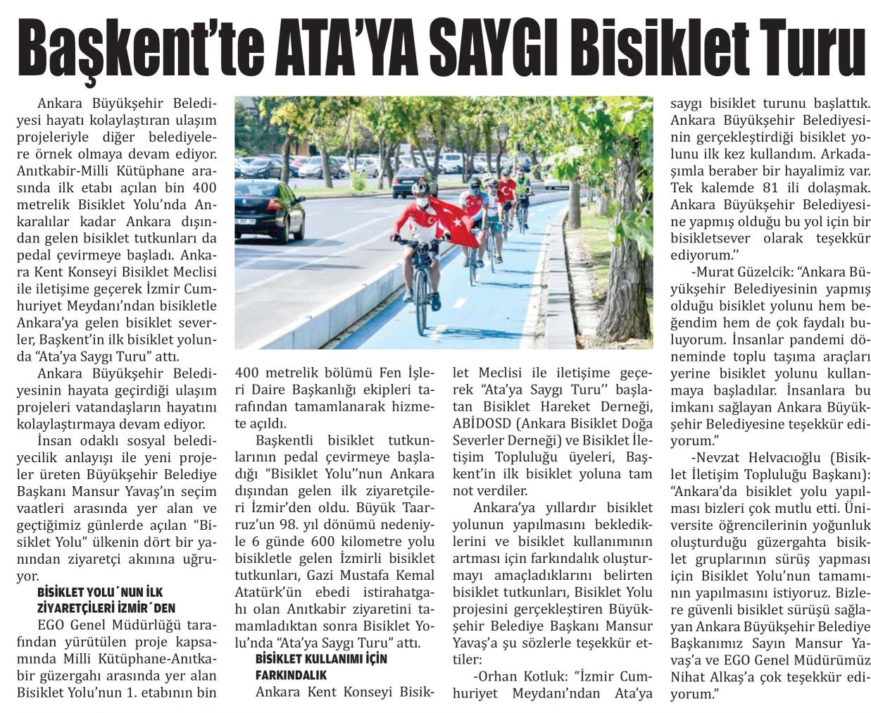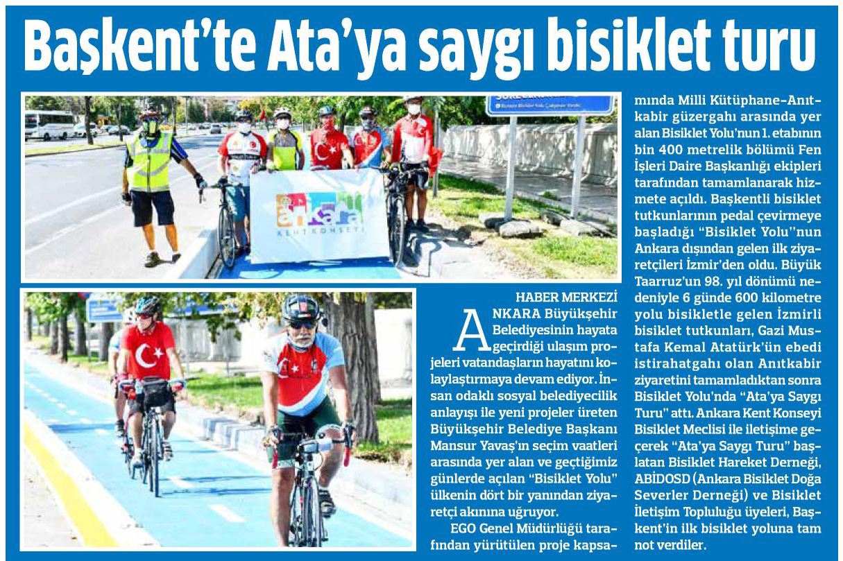 Milliyet Ankara / 27.08.2020 Ata’ya saygı bisiklet turu