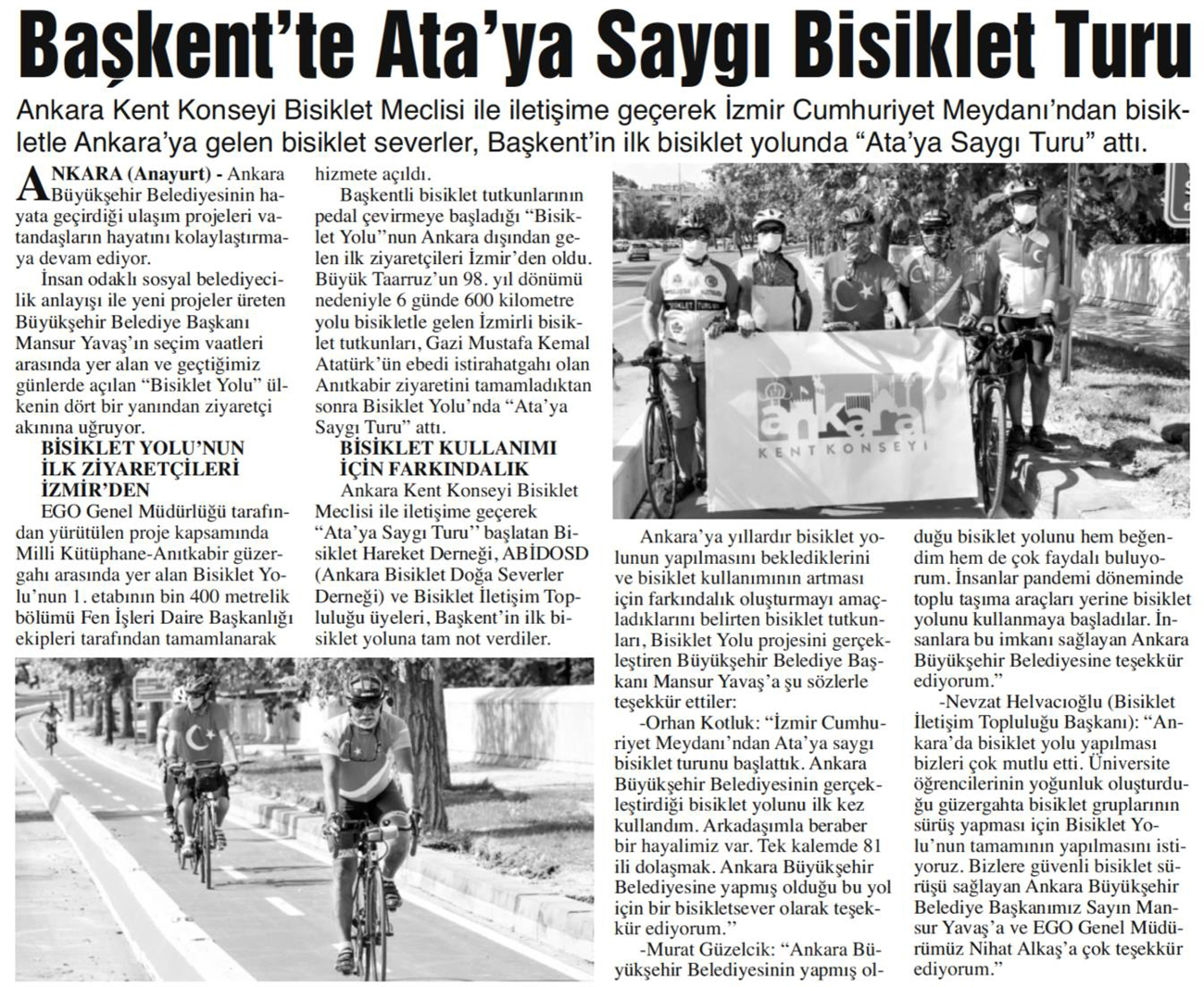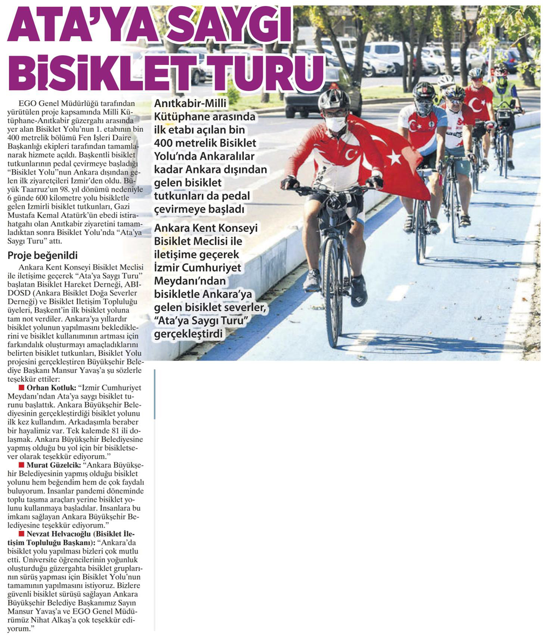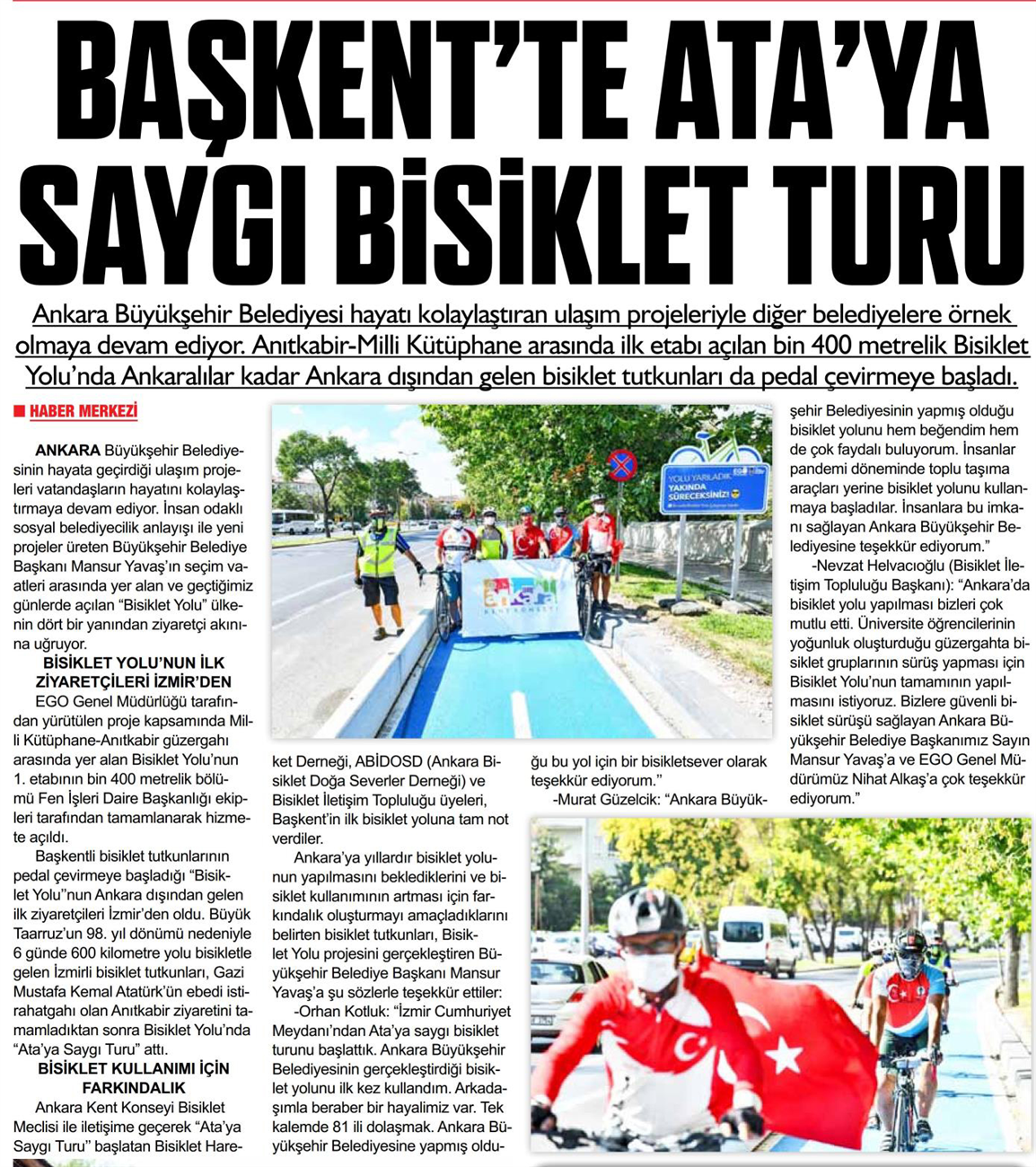 Milliyet Ankara / 27.08.2020 Ata’ya saygı bisiklet turu