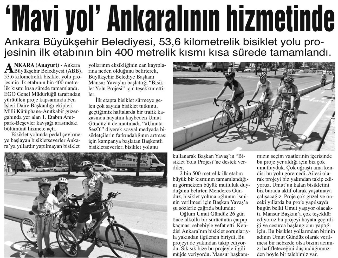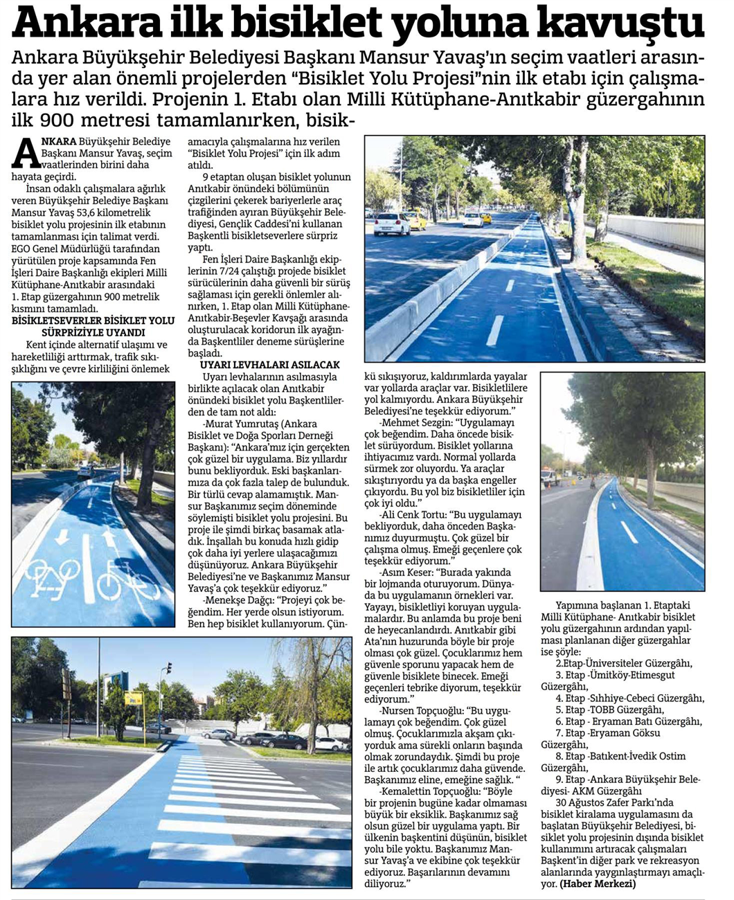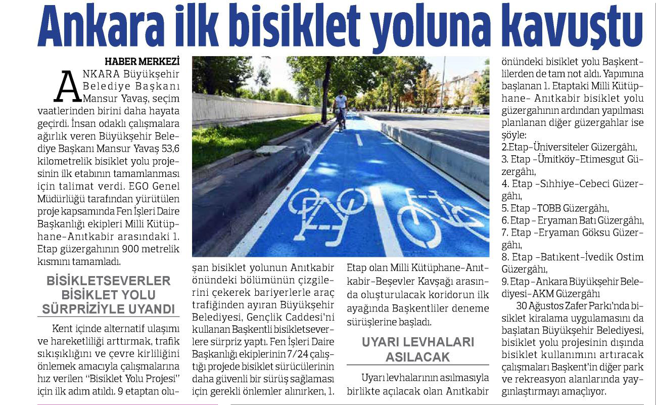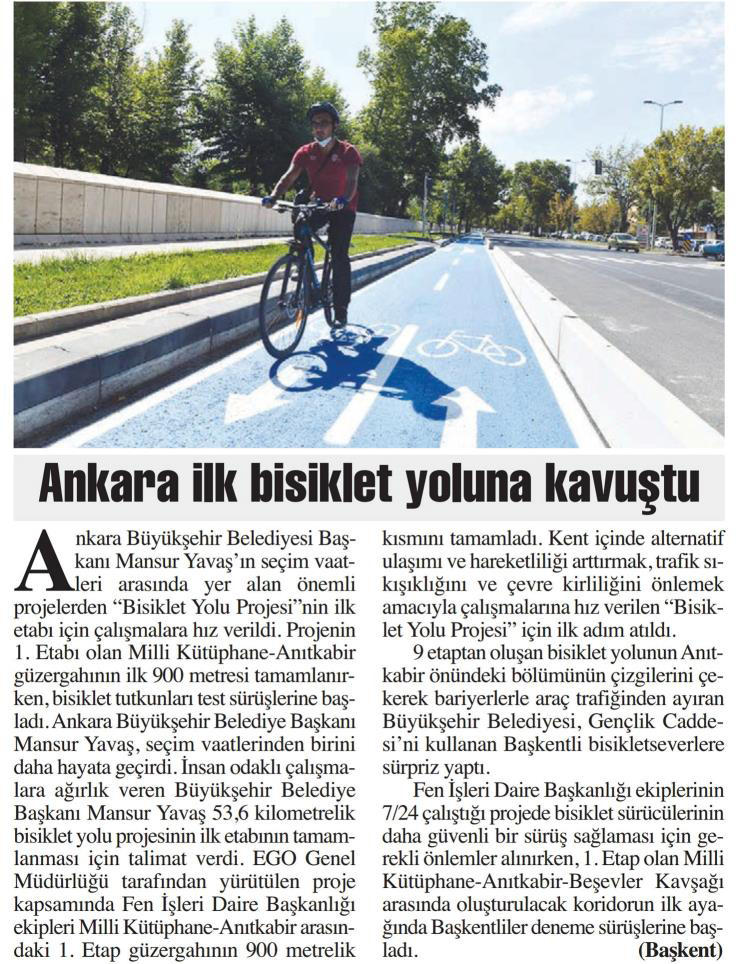 Başkent Gazetesi / 13.08.2020 Ankara ilk bisiklet yoluna kavuştu
