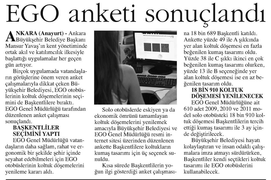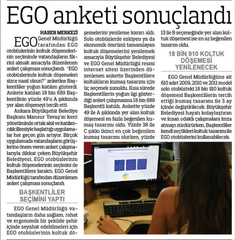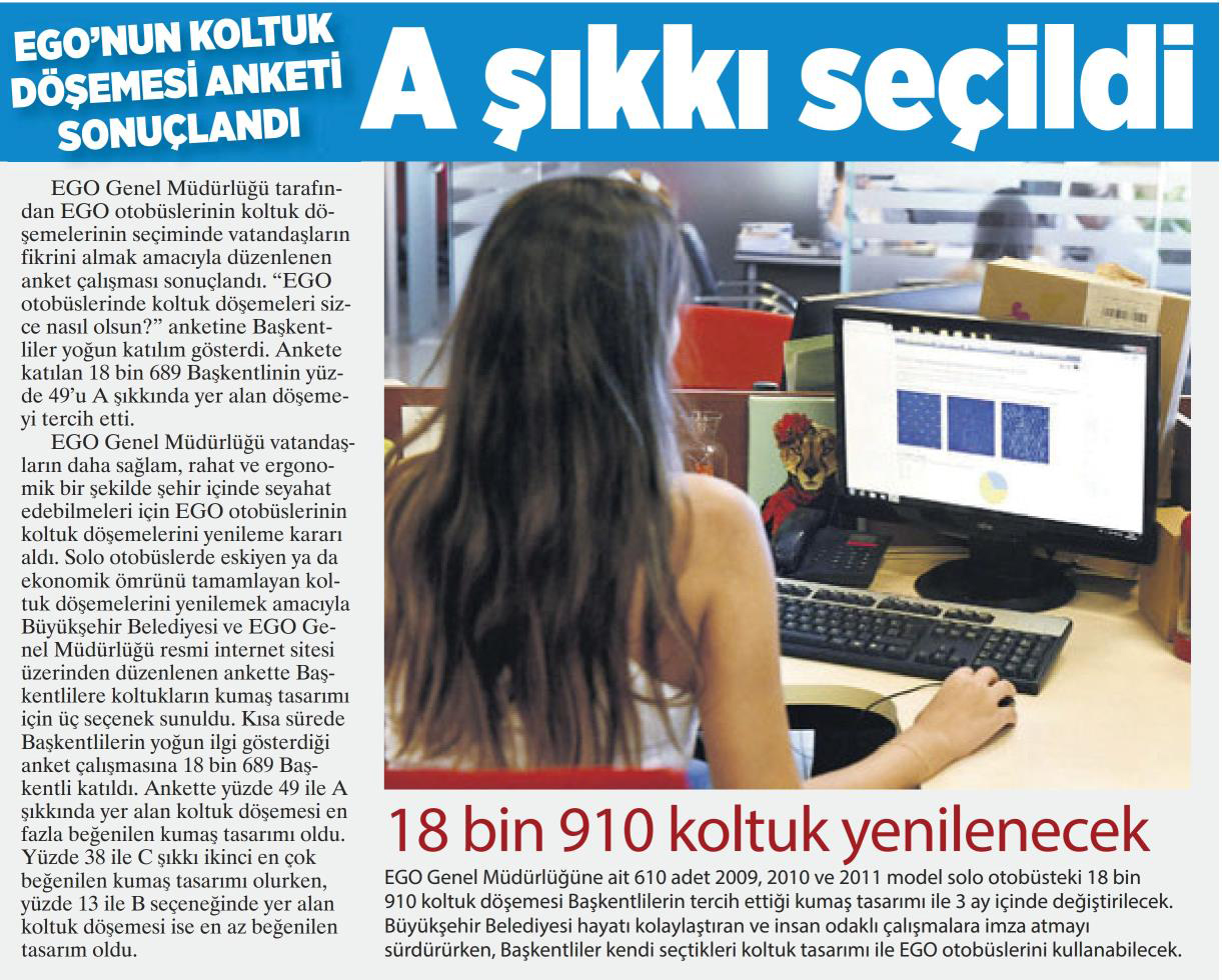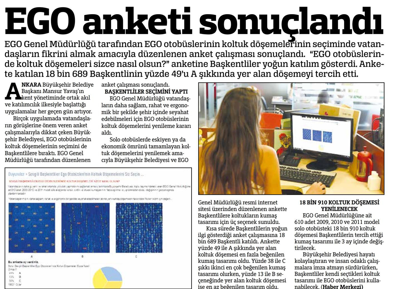 Milliyet Ankara / 08.08.2020 EGO’nun koltuk döşemesi anketi sonuçlandı
