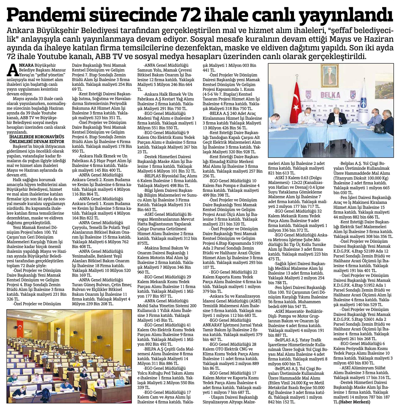 Güçlü Anadolu / 02.07.2020 Pandemi sürecinde 72 ihale canlı yayınlandı