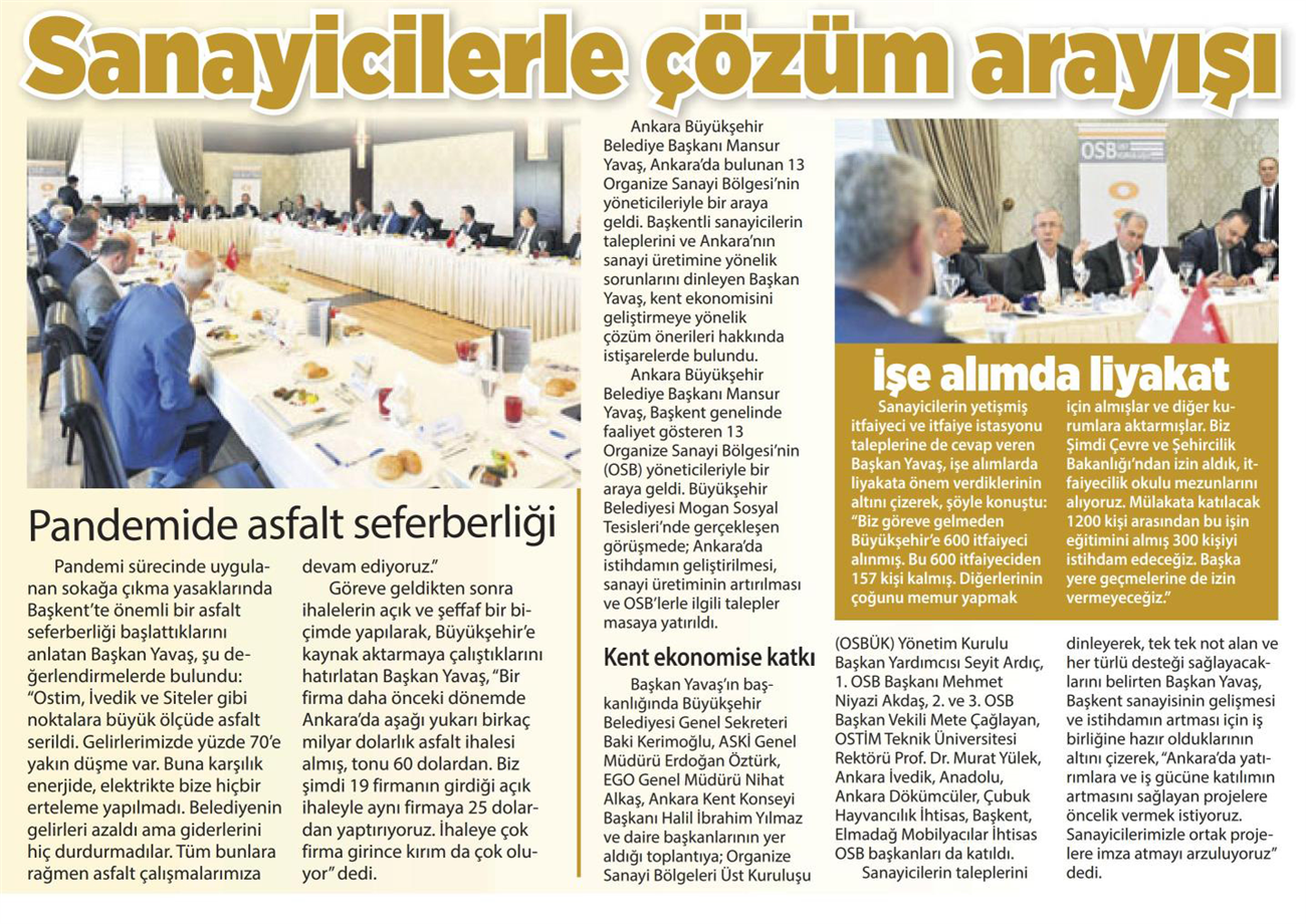 Milliyet Ankara / 02.07.2020 Sanayicilerle çözüm arayışı