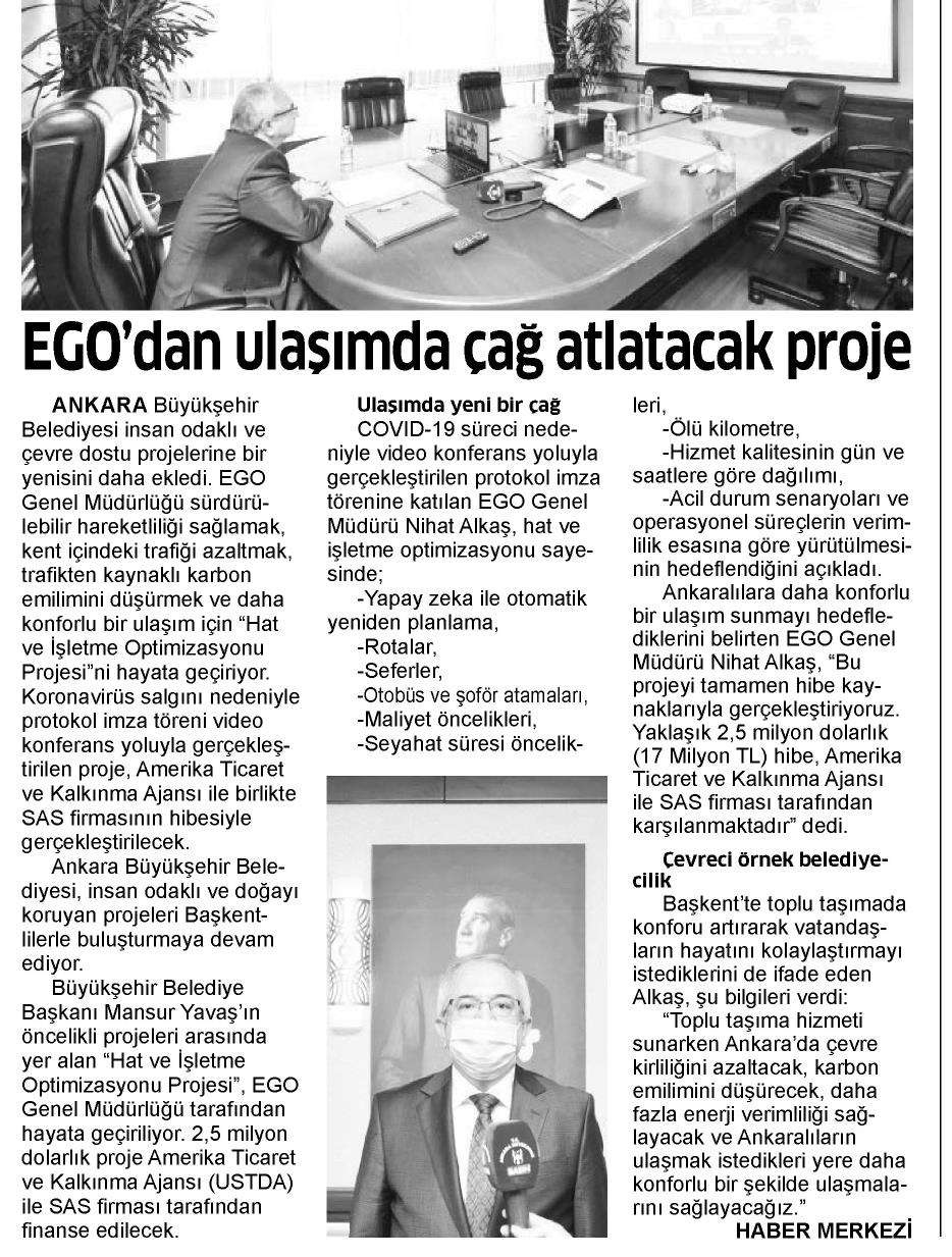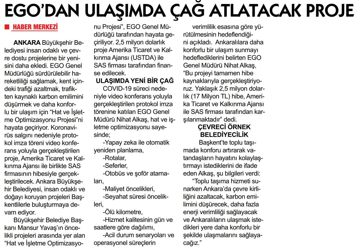 Başkent Gazetesi / 03.07.2020 EGO'dan ulaşımda çağ atlatacak proje