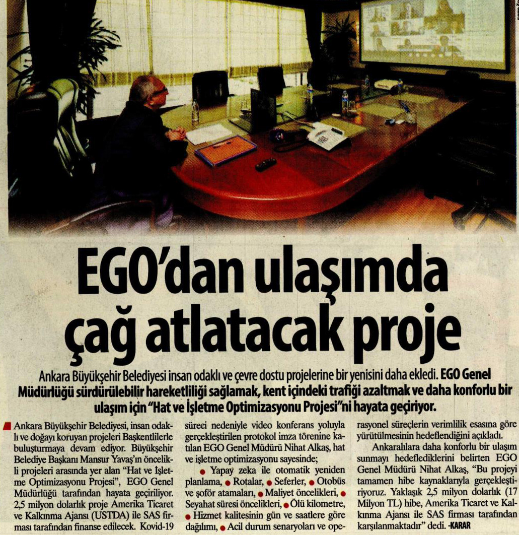 Karar / 03.07.2020 EGO'dan ulaşımda çağ atlatacak proje