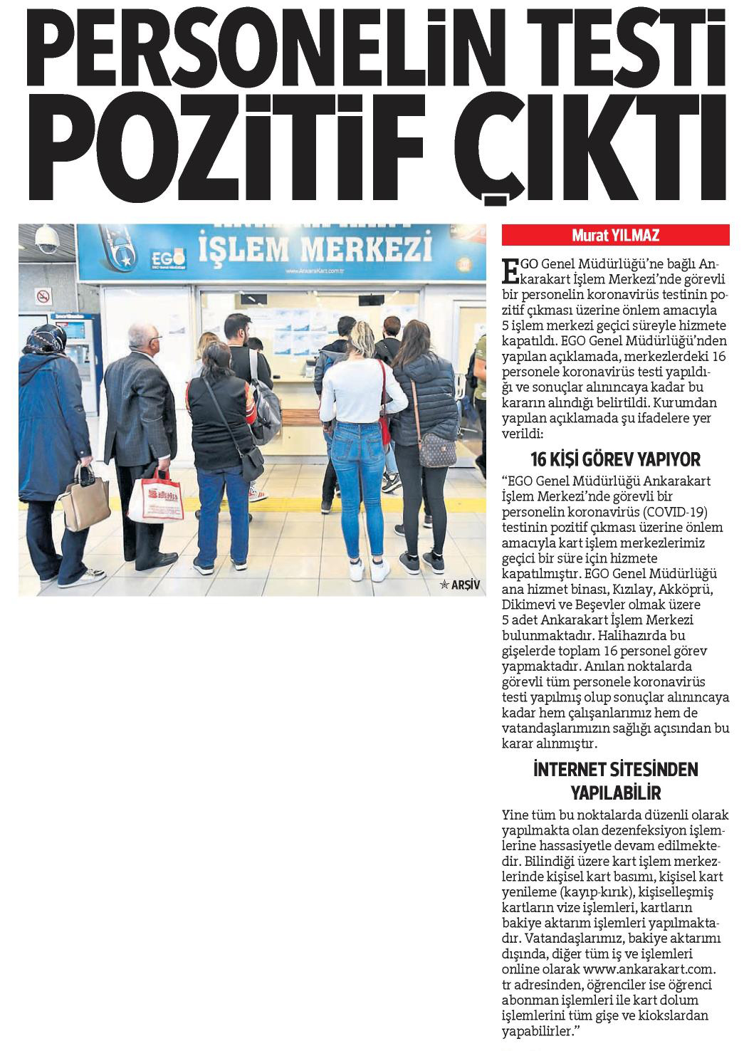 Hürriyet Ankara / 17.07.2020 Personelin testi pozitif çıktı