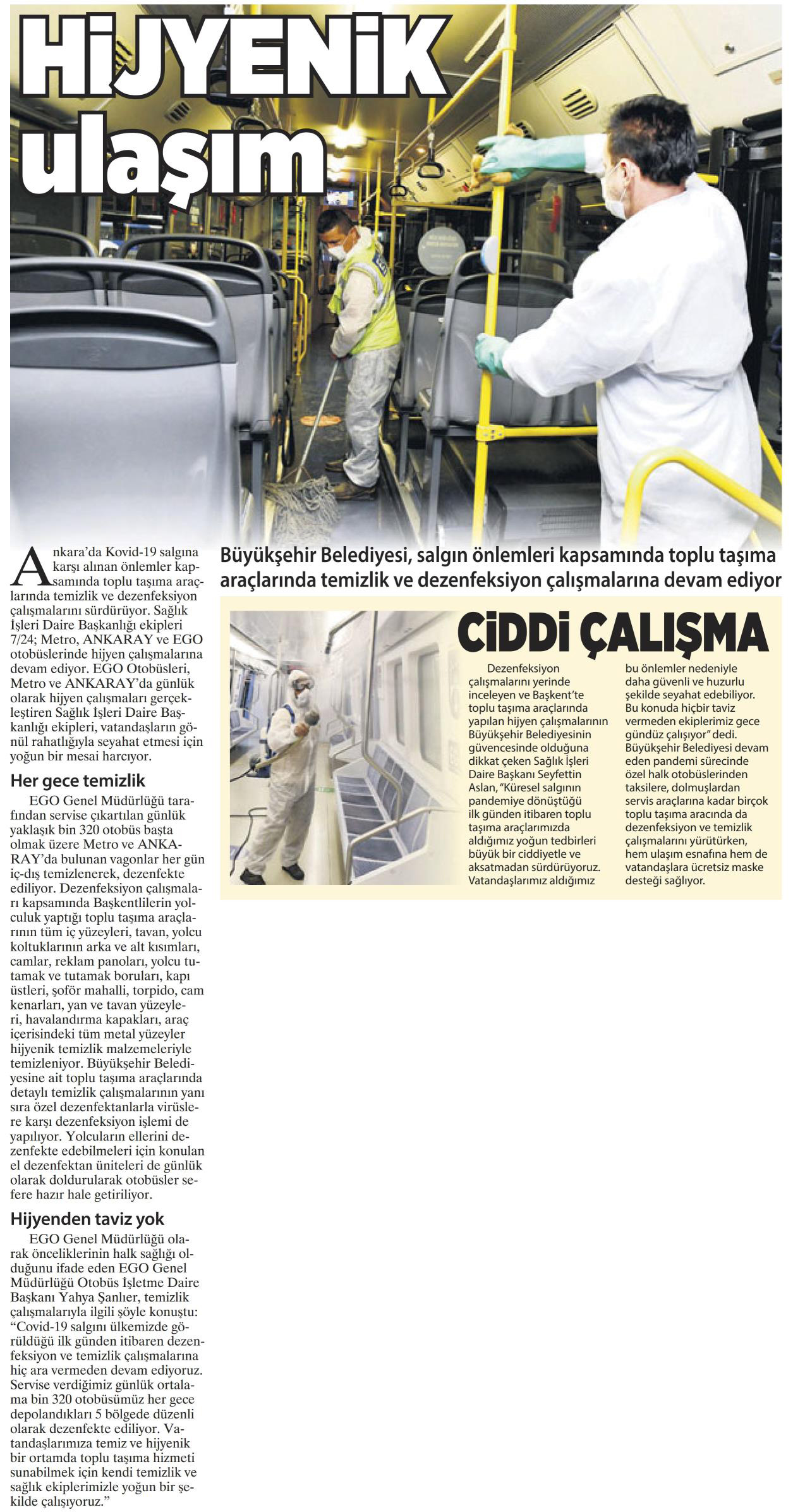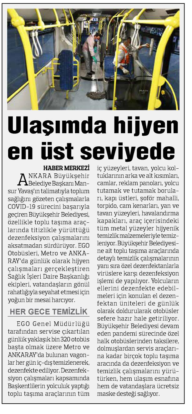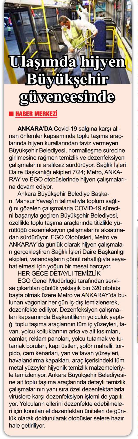 Milliyet Ankara / 20.07.2020 Hijyenik ulaşım