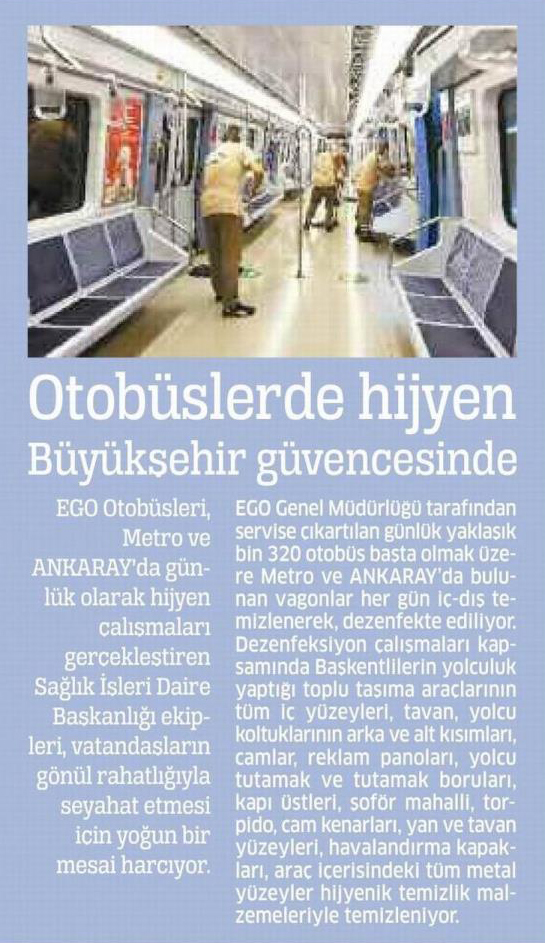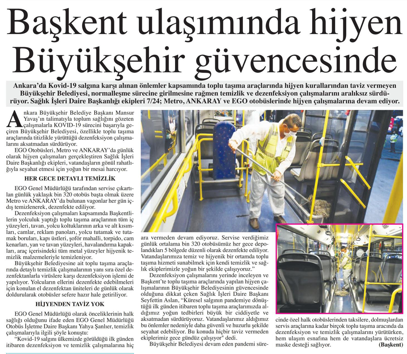 Başkent Gazetesi / 21.07.2020 Başkent ulaşımında hijyen Büyükşehir güvencesinde