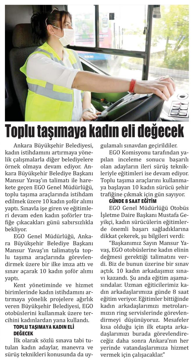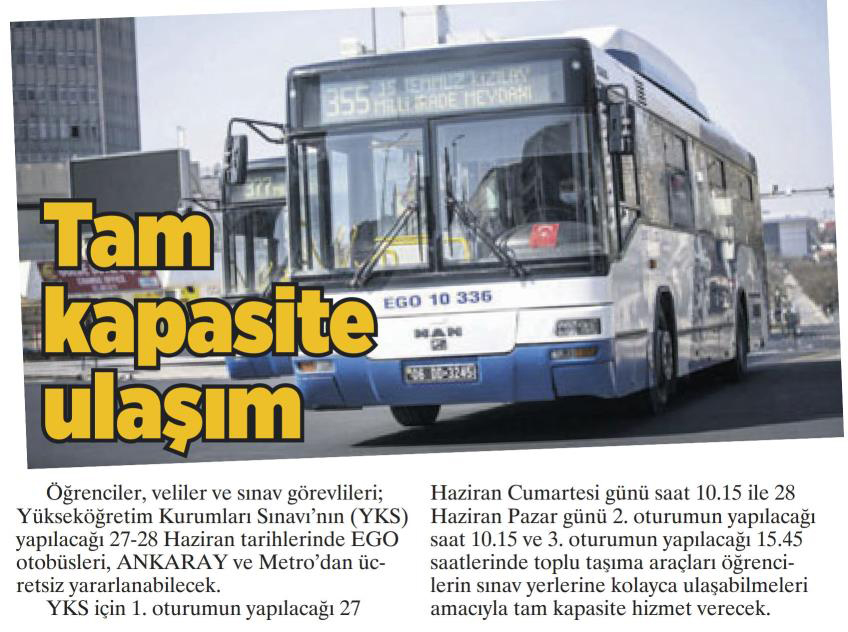 Milliyet Ankara / 27.06.2020 Tam kapasite ulaşım
