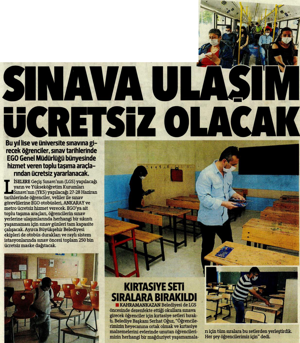 Hürriyet Ankara / 19.06.2020 Sınava ulaşım ücretsiz olacak