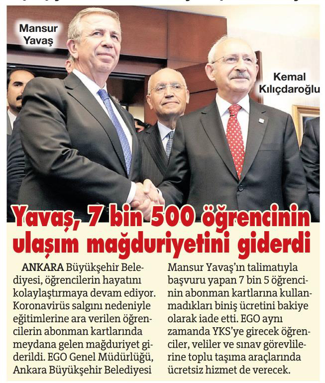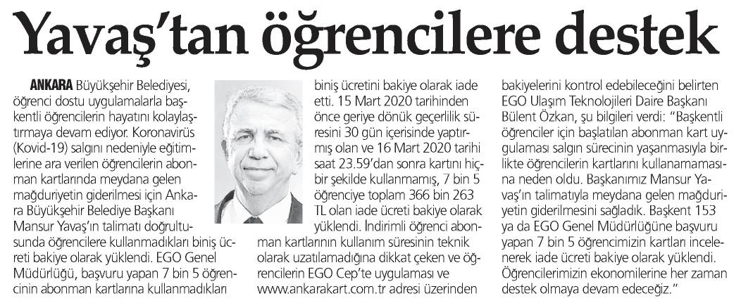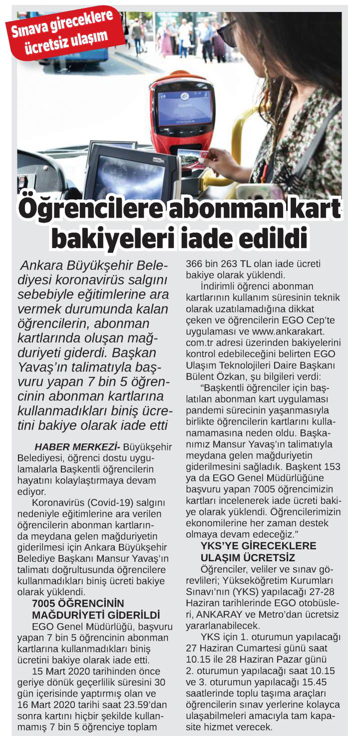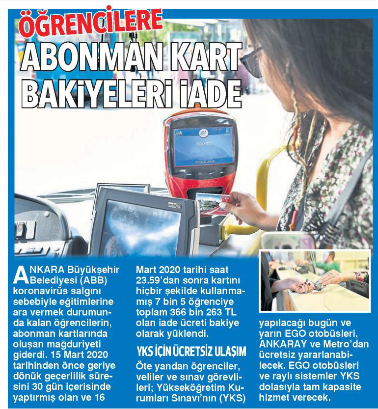 Hürriyet Ankara / 27.06.2020 Öğrencilere abonman kart bakiyeleri iade