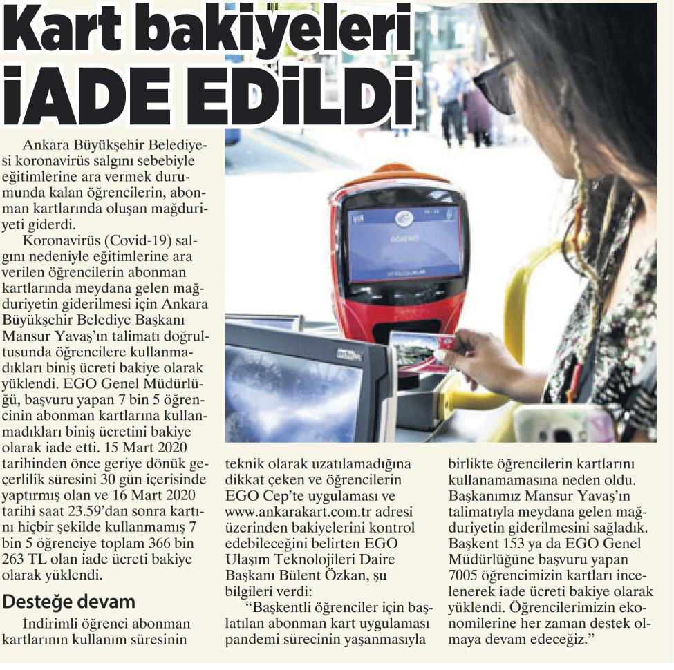 Milliyet Ankara / 27.06.2020 Kart bakiyeleri iade edildi