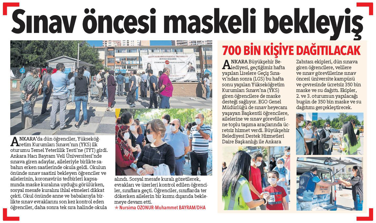 Milliyet Ankara / 19.06.2020 Belediyeden öğrencilere sınav günü desteği