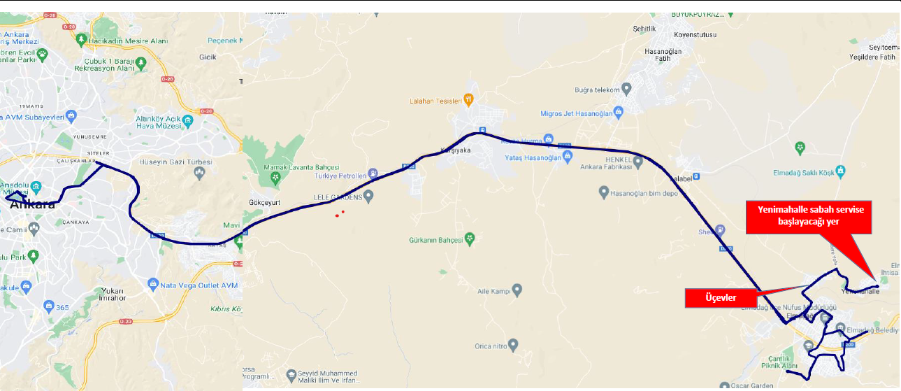 Opera hareket noktasından verilmek üzere Elmadağ Üçevler ve Yenimahallerine hizmetin sağlanabilmesi amacıyla 21.08.2024 tarihi itibariyle 354-1 Elmadağ- Üçevler- Yenimahalle- Gençlik Parkı Hattımızın araçları ile hizmet verilmeye başlanacaktır. 354-1 hat numaralı güzergahımıza saat 06:50 Yenimahalle’den başlayacak şekilde 1 adet servis ile hizmet verilecektir