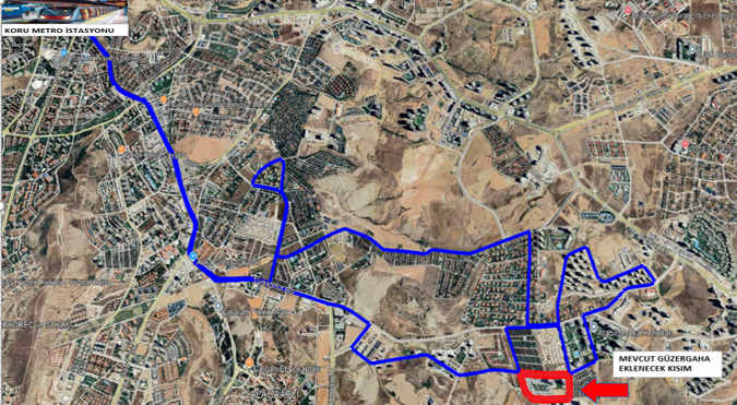 Vatandaşlarımızdan gelen talepler doğrultusunda 592 Koru Metro İstasyonu-Yıldız 88 hattımızın güzergahında   23.01.2025 perşembe tarihi itibariyle başlanmak üzere  krokide belirtilen şekilde düzenleme yapılmıştır.