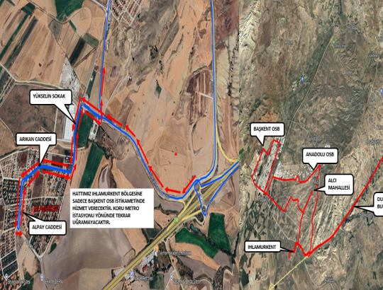 Vatandaşlarımızdan gelen talepler doğrultusunda 581 Koru Metro İstasyonu-Organize Sanayi Bölgesi hattımızın güzergahında 06.03.2025 perşembe tarihi itibariyle başlanmak üzere krokide belirtilen şekilde düzenleme yapılmıştır.