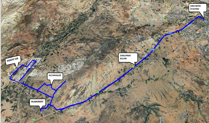 .EGO CEPTE sisteminden sağlıklı şekilde veri alınabilmesi ve vatandaşlarımızın mağduriyet yaşamamaları adına yönelik olarak yapılan çalışmalar kapsamında, 581-1 Koru Metro İstasyonu-Organize Sanayi Bölgesi flama adlandırmasıyla hizmete sunulan yeni hattımızla 22.03.2025 cumartesi tarihi itibariyle krokide belirtilen güzergah üzerinden hizmet verilmeye başlanacaktır. Hattın servis saatleri hizmet verilmeye başlanan tarihten itibaren Kuruluşumuz internet sitesinde ve EGO CEPTE uygulamasında yayınlanacaktır.