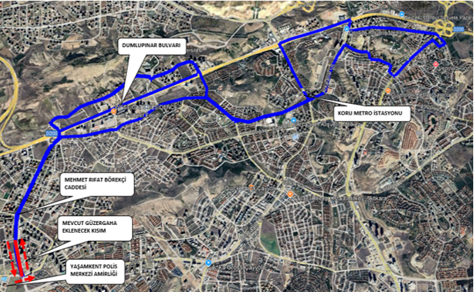 VVatandaşlarımızdan gelen talepler doğrultusunda 576 Koru Metro İstasyonu-Venüskent-Yaşamkent-Ümit Mahallesi hattımızın güzergahında 28.05.2025 Çarşamba tarihi itibariyle başlanmak üzere krokide belirtilen şekilde düzenleme yapılmıştır.