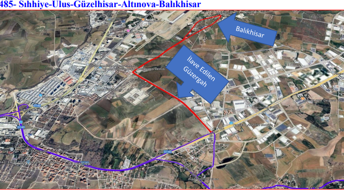 Akyurt ilçesi Balıkhisar Mahallesinde ikamet vatandaşlarımızdan gelen yoğun talepler üzerine daha etkin ve verimli bir ulaşım hizmeti sunmak amacıyla; 485 Sıhhiye-Ulus-Güzelhisar-Altınova-Balıkhisar nolu hat güzergahında değişiklik yapılmış olup, 22.09.2025 tarihi itibariyle aşağıda bulunan güzergâhta hizmet verilmeye başlanacaktır