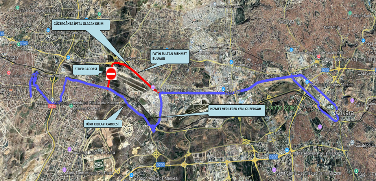 Durum üzerine ilgili cadde üzerinden hizmet sağlayan 21 farklı EGO hattımızın güzergâhında revize çalışması yapılması zorunlu hale gelmiştir.