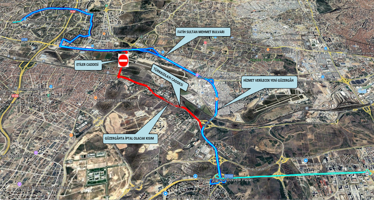 Durum üzerine ilgili cadde üzerinden hizmet sağlayan 21 farklı EGO hattımızın güzergâhında revize çalışması yapılması zorunlu hale gelmiştir.