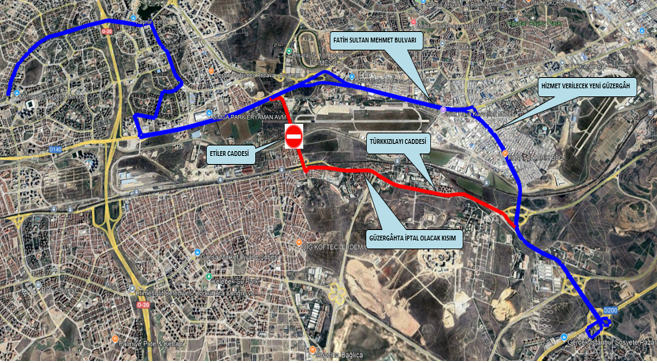Durum üzerine ilgili cadde üzerinden hizmet sağlayan 21 farklı EGO hattımızın güzergâhında revize çalışması yapılması zorunlu hale gelmiştir.