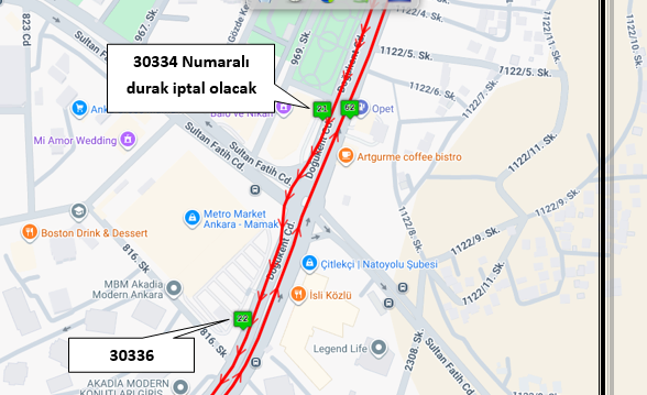 Doğukent Caddesi üzerinde bulunan 30334 numaralı durakta bekleyen yolcuların, metro çalışmasının tehlike arz etmesi sebebiyle 330, 334 ve 342 numaralı hattımızın yolcuları 250 metre ileride Doğukent Caddesi üzerinde bulunan 30336 numaralı durağı kullanılması gerekmektedir