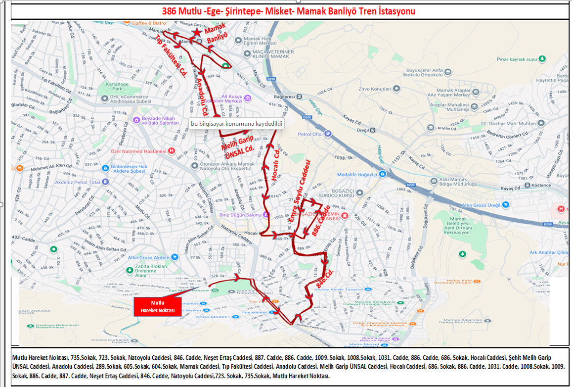 386 Mutlu Ege Şirintepe Misket Mamak Banliyö Tren İstasyonuna yeni hat eklenmiştir.