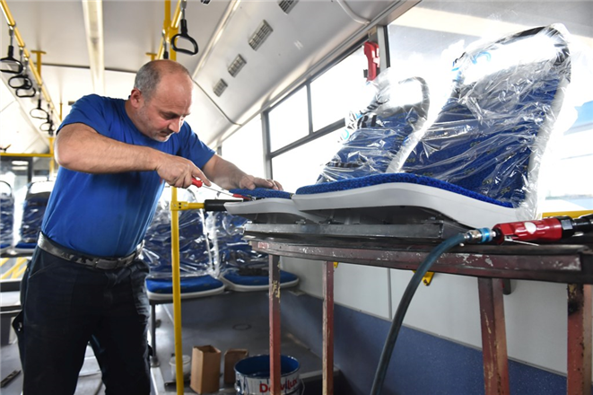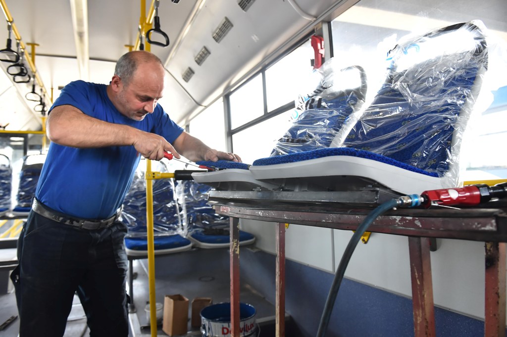 Aynı zamanda hasarlı, kirli, yırtık ve kullanılamaz hale gelmiş koltukların sağlam, rahat ve ergonomik yeni tip koltuklarla değişimini de gerçekleştiren ekipler, yoğun bir mesai harcıyor.