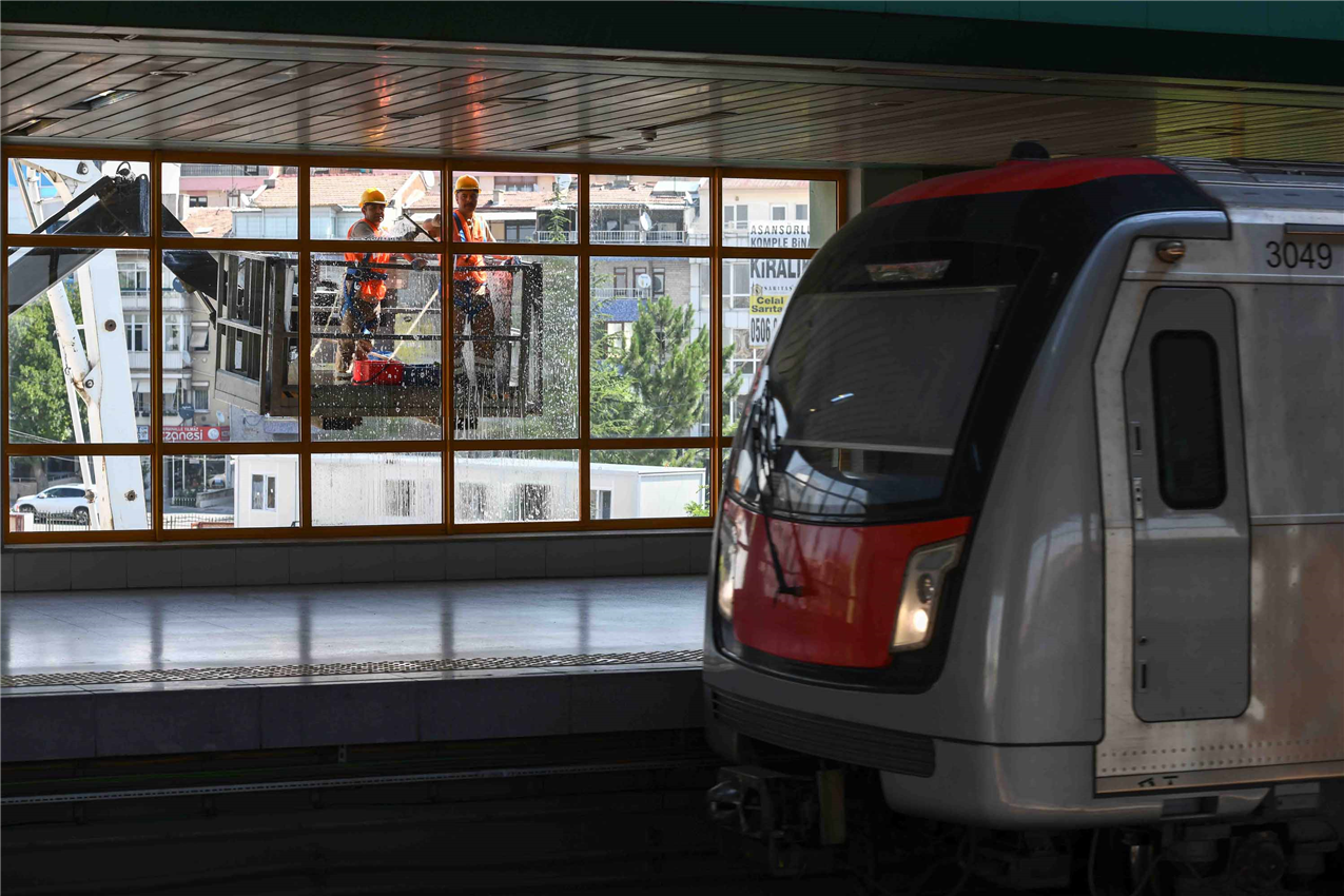 -ANKARA BÜYÜKŞEHİR BELEDİYESİ TEMİZLİK EKİPLERİ; METRO, ANKARAY VE TELEFERİK HATLARINDA HUMMALI BİR TEMİZLİK ÇALIŞMASI YÜRÜTÜYOR